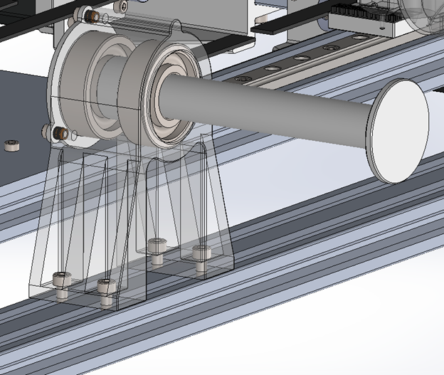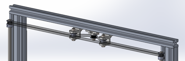 Чтобы избежать перекоса балки сверху был добавлен кольцевой ремень длиной 1040 мм и три ролика, выбирающих лишнюю свободу.