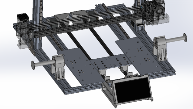 Стойка под экран спроектирована так, чтобы его можно было убрать, чтобы он либо не мешал, либо не пострадал в случае чего, так же его с неё можно легко взять в руки и ходить с ней вокруг принтера, что очень удобно, например, при поиске оффсета сопел: