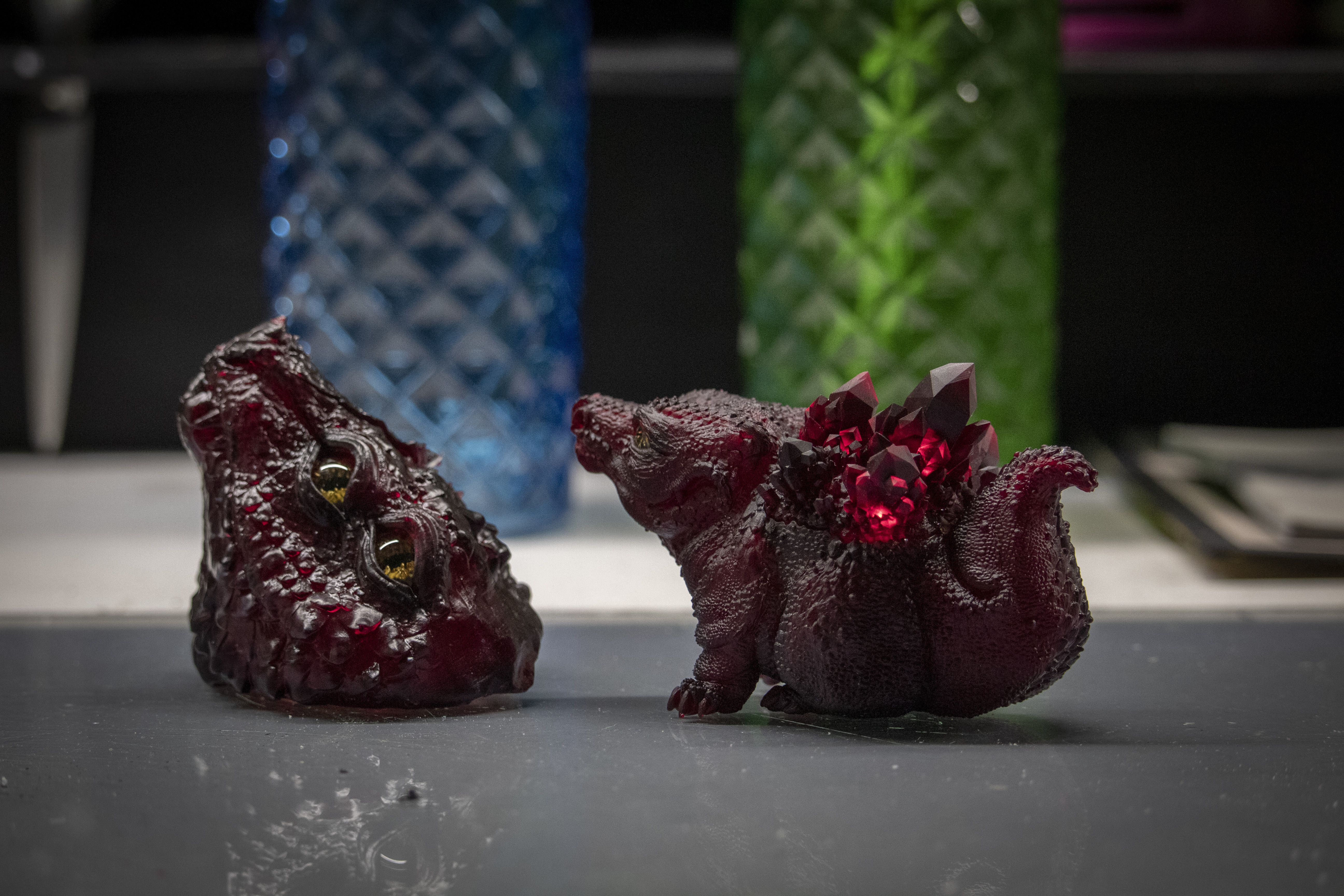 Чаще всего, Вера использует фотополимеры от HARZ Labs и AmeraLabs. К примеру, кристаллы Крока напечатаны вишневой смолой Model Resin.