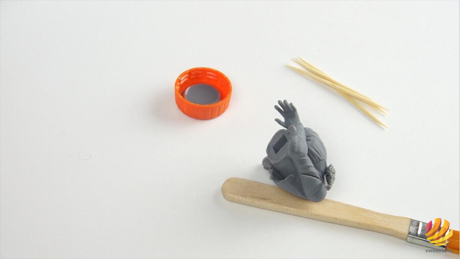 Наливаем чуть-чуть смолы в крышку, макаем в нее зубочистку и переносим прицепившуюся к ней капельку на трещину модели.