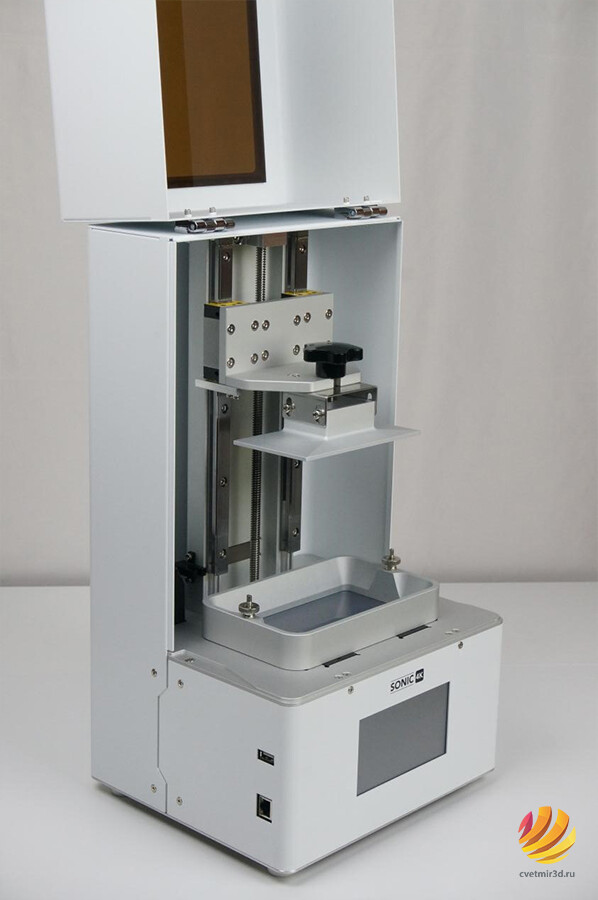 В отличие от бюджетных принтеров Phrozen, корпус Sonic 4К, как и все старшие версии, выполнен из стали и имеет откидывающуюся вверх крышку. Это нужно учитывать при подготовке места для принтера. С открытой крышкой Sonic имеет высоту около 80-ти см.