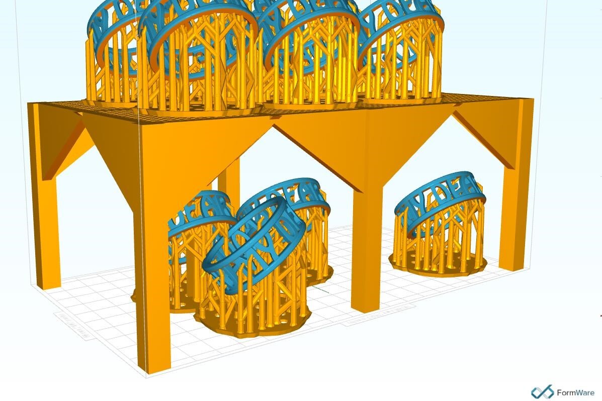 Нашли несколько колец и кулонов в открытом доступе и все вместе напечатали за один заход.