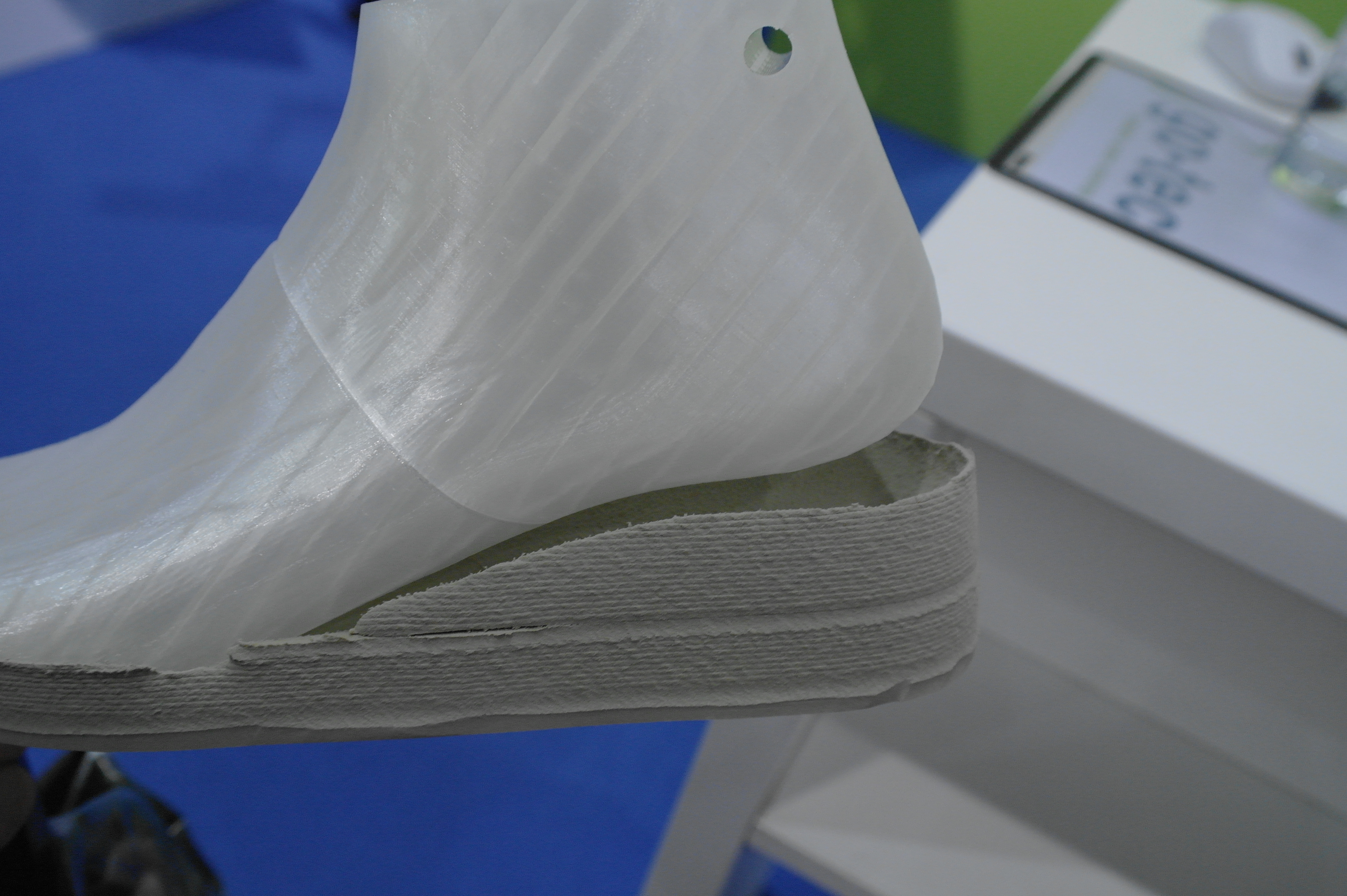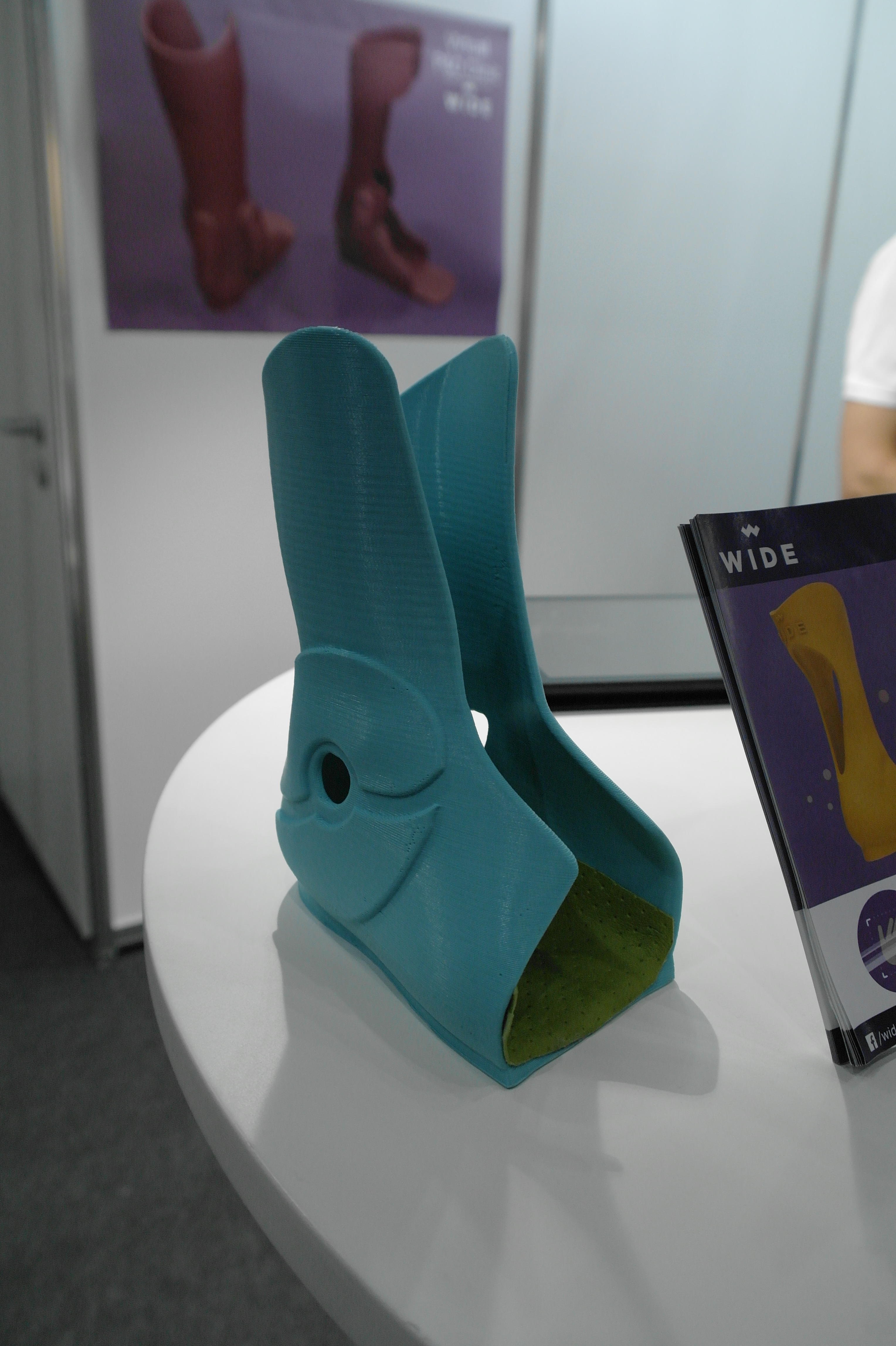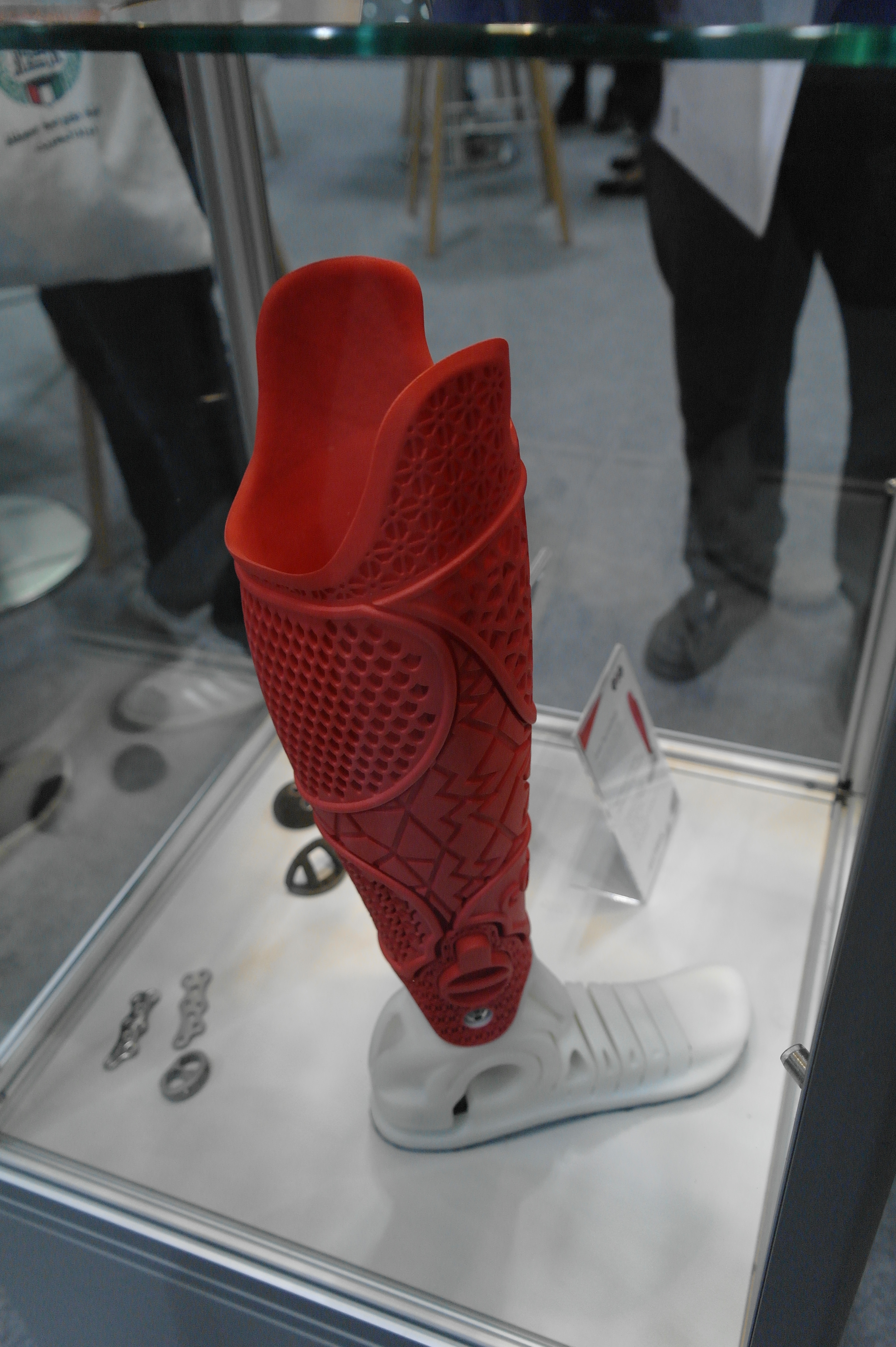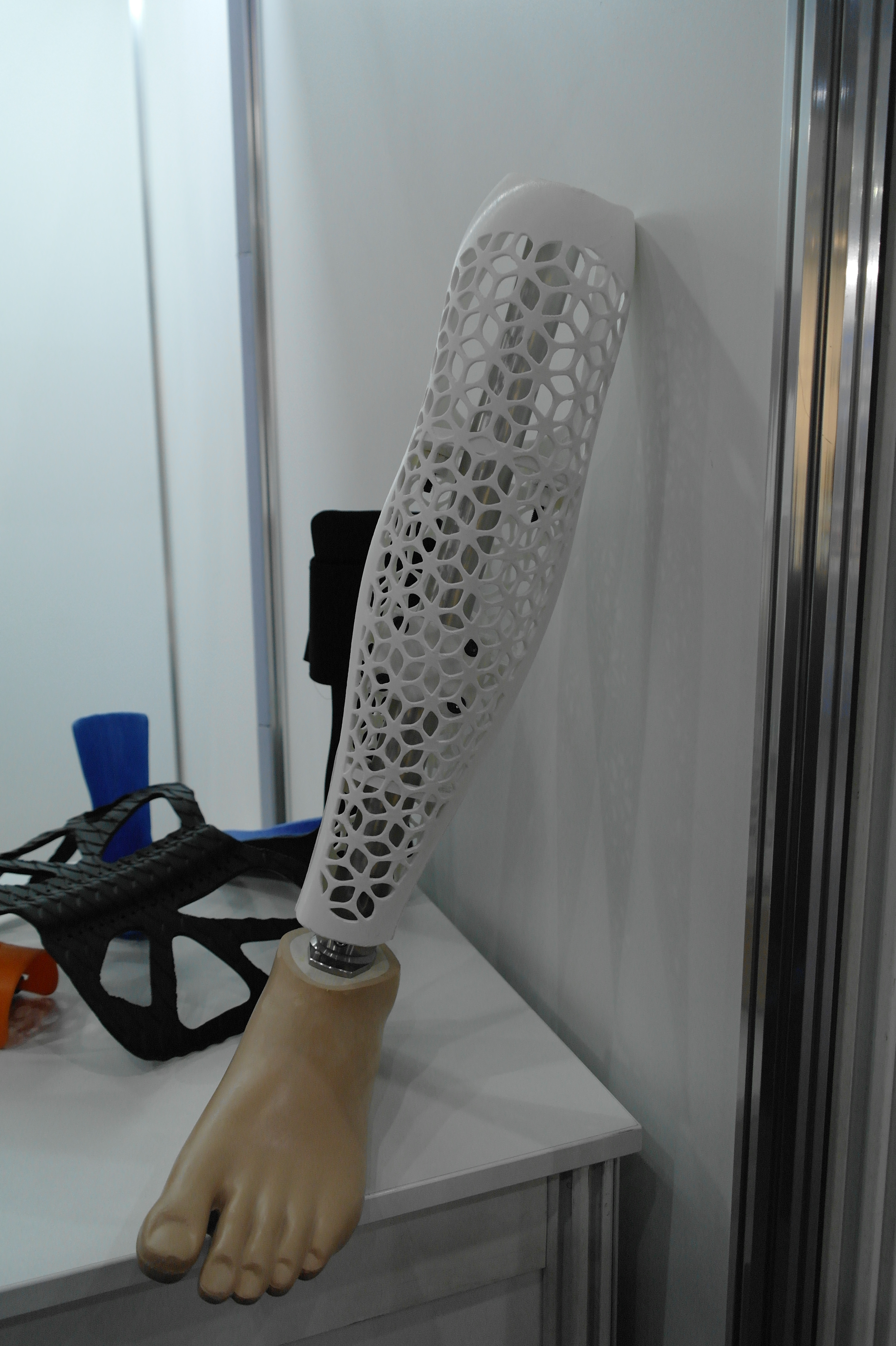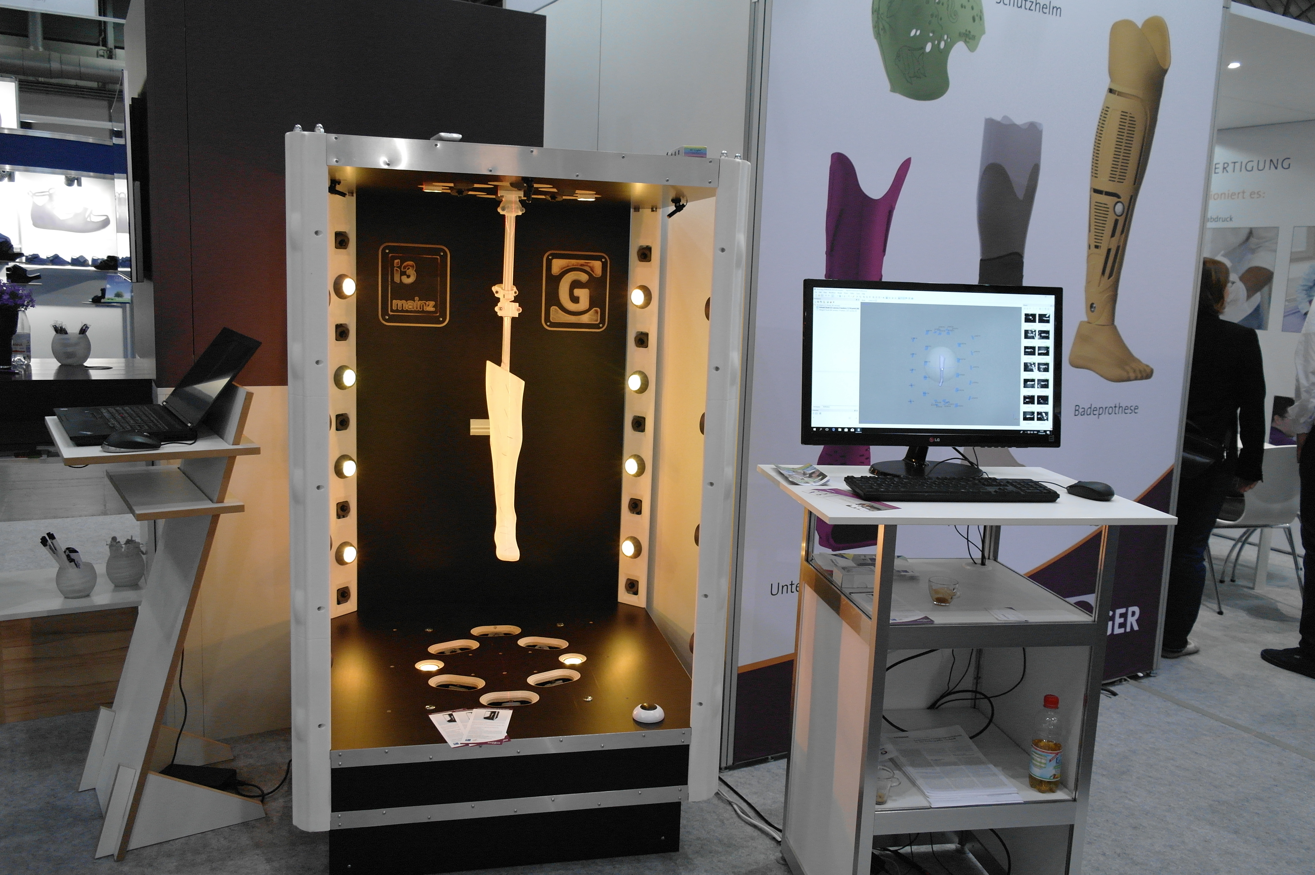 Помимо именитых фирм очень многие используют достаточно бюджетные принтеры для прототипирования ортезов или оснастки.Отдельным стендом выставлялись ребята из WASP.Помимо принтеров они представляли и свой сканер.Даже у самых известных компаний в отрасли, вроде Otto Bock можно было найти те же Raise. Я за всю выставку насчитал порядка 5 штук этих принтеров.Причем головы принтеров были оснащены фидерами от Bondtech. Ибо штатная голова на 2 экструдера весит порядка 900 грамм. Почти килограмм директа на 2 валах 8 мм диаметром. Апгрейд от Bondtech на дуал версию весит 425 грамм.Для изготовления стелек для ортопедической обуви используется скан стопы с последующей его печатью.Так же был обнаружен новенький двухголовый Leapfrog.Тут был недавно пост о печати косметики для протезов. Ее тоже печатают. Не всегда хорошо, но как объясняют, что для примерки отлично подходит, а конечный результат получают при помощи печати на SLS.Крепление всегда осуществляется за неподвижные элементы протеза.