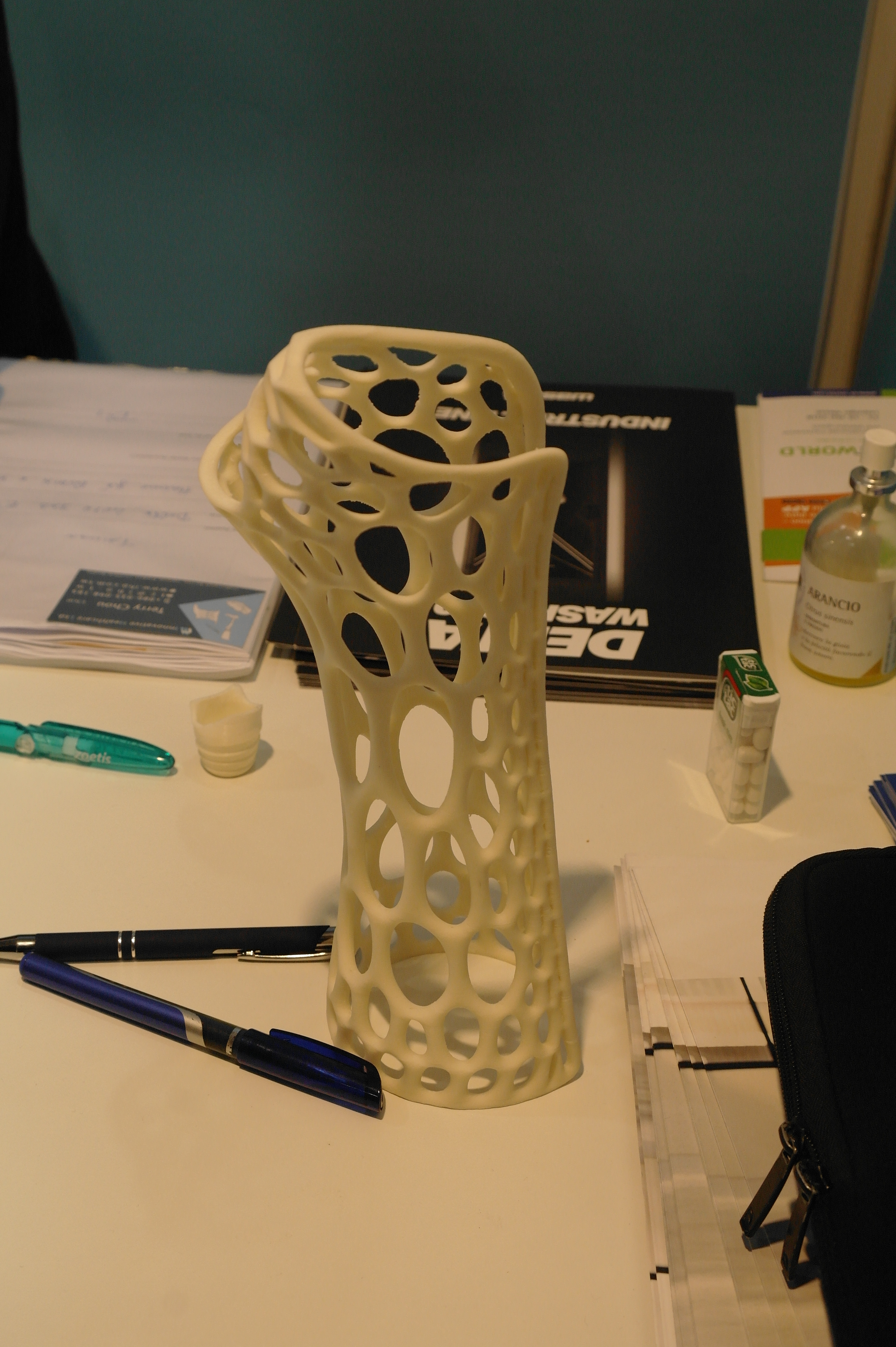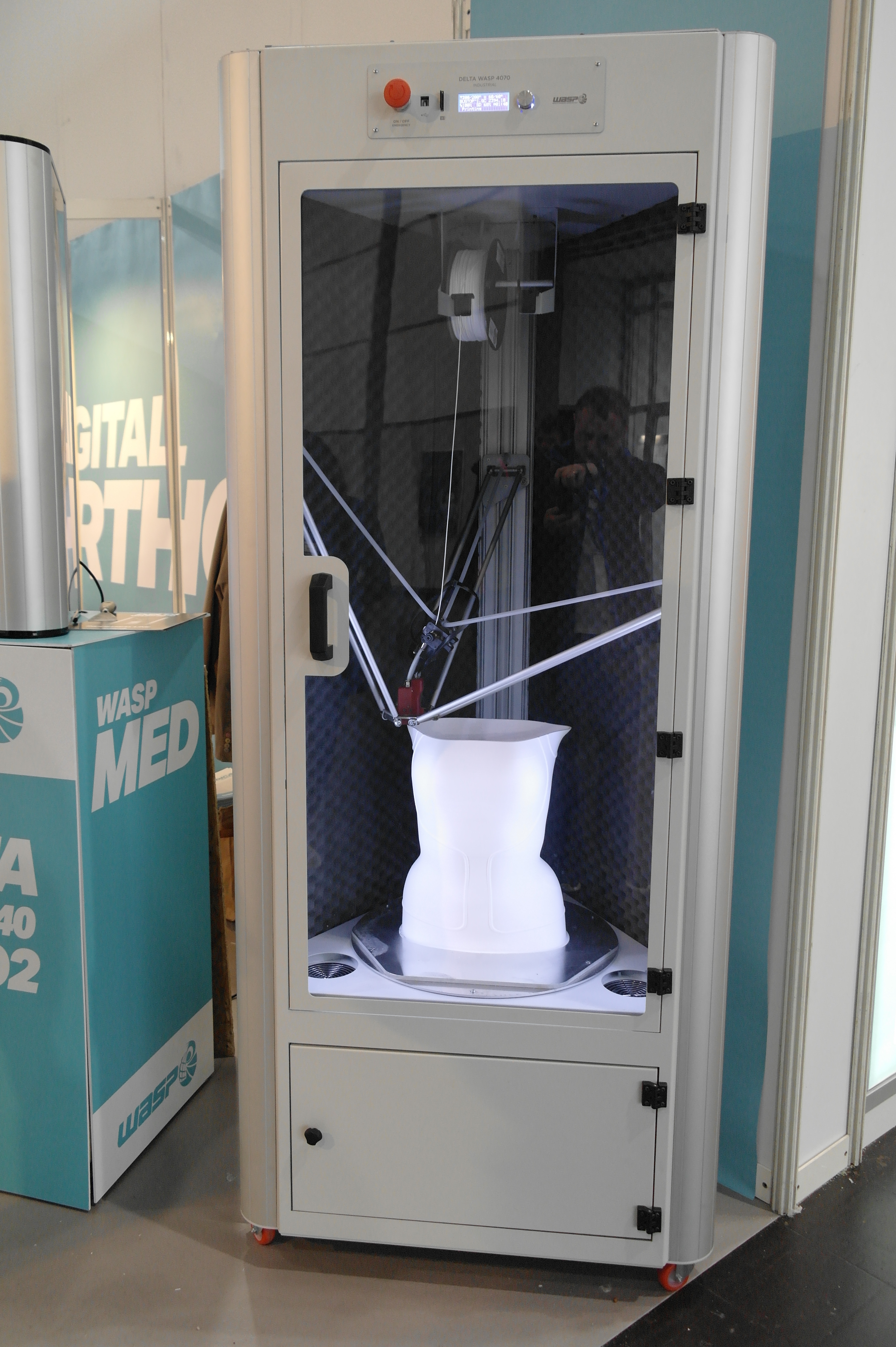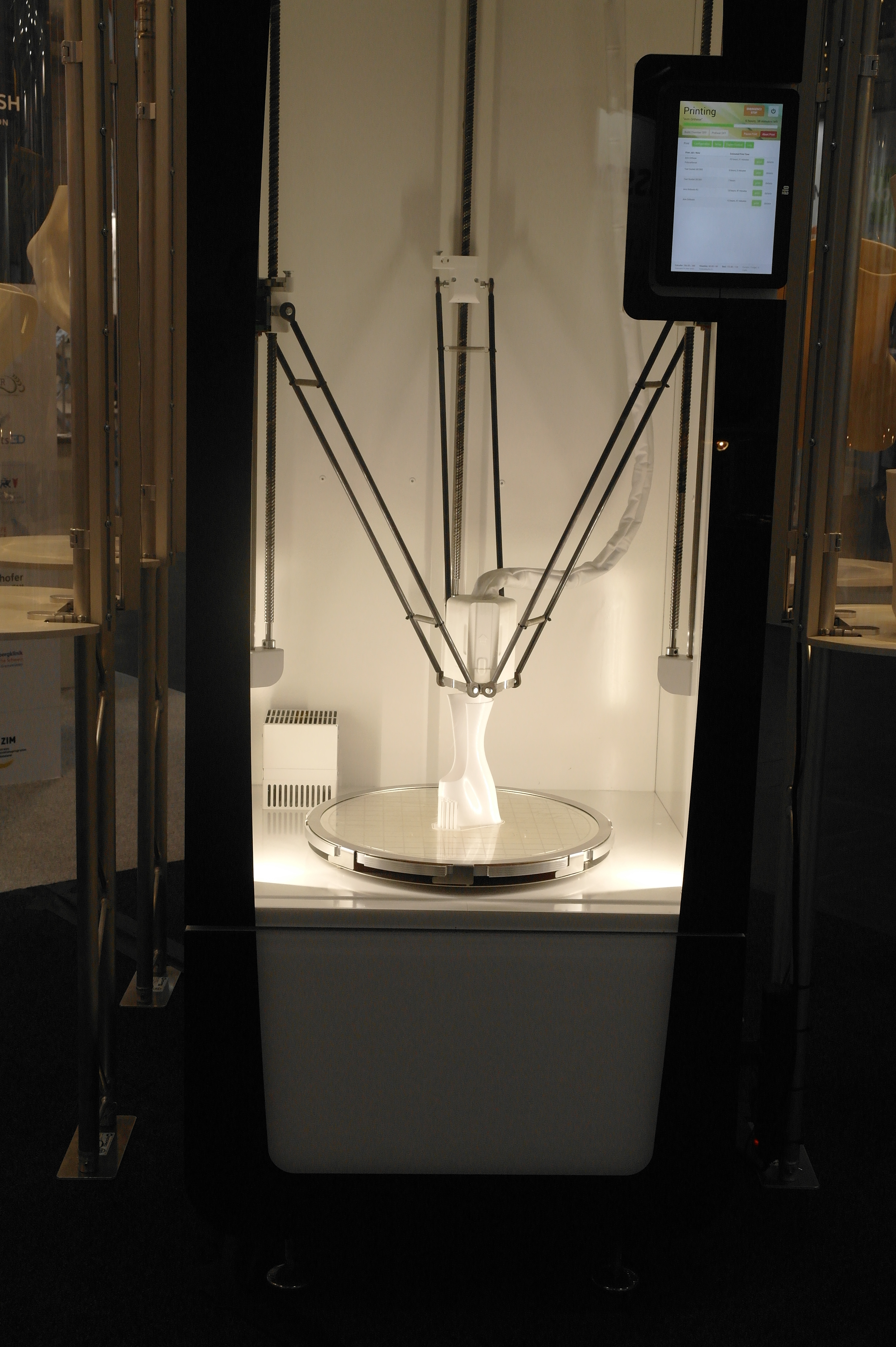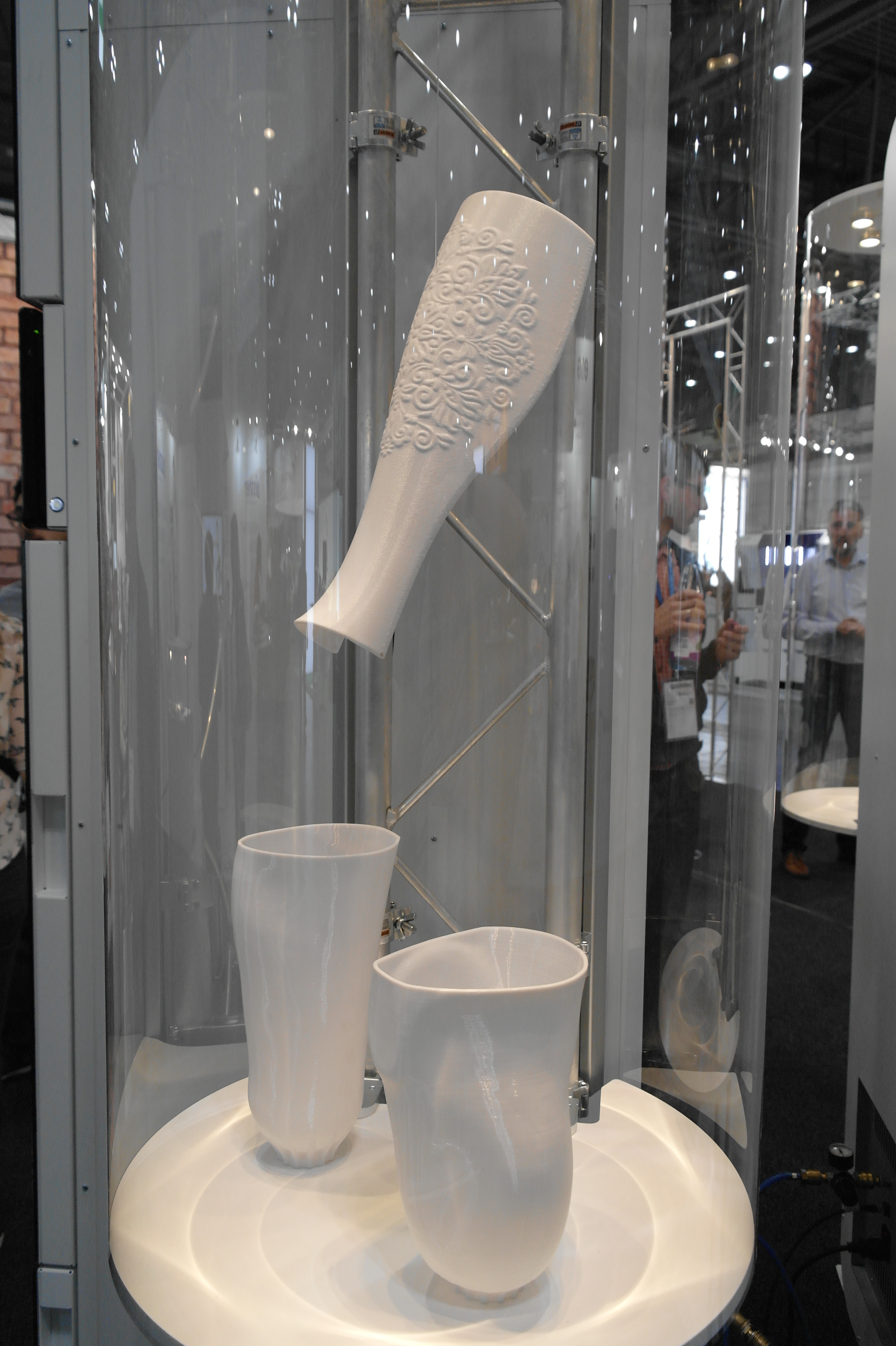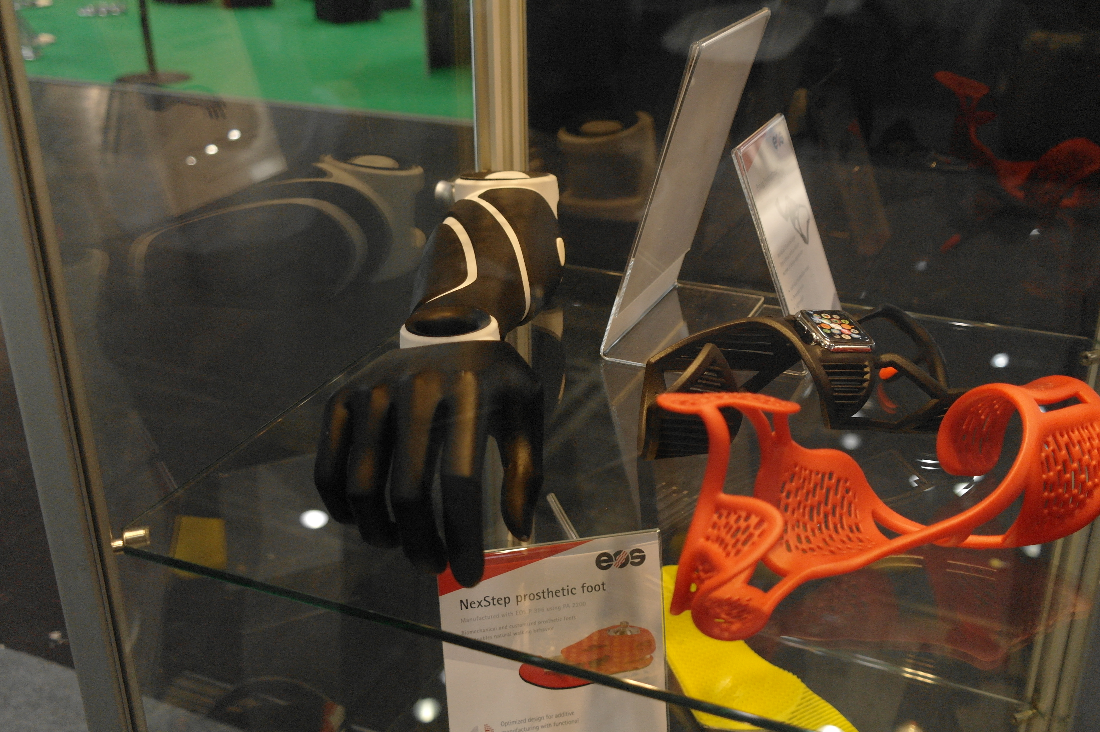 Помимо именитых фирм очень многие используют достаточно бюджетные принтеры для прототипирования ортезов или оснастки.Отдельным стендом выставлялись ребята из WASP.Помимо принтеров они представляли и свой сканер.Даже у самых известных компаний в отрасли, вроде Otto Bock можно было найти те же Raise. Я за всю выставку насчитал порядка 5 штук этих принтеров.Причем головы принтеров были оснащены фидерами от Bondtech. Ибо штатная голова на 2 экструдера весит порядка 900 грамм. Почти килограмм директа на 2 валах 8 мм диаметром. Апгрейд от Bondtech на дуал версию весит 425 грамм.Для изготовления стелек для ортопедической обуви используется скан стопы с последующей его печатью.Так же был обнаружен новенький двухголовый Leapfrog.Тут был недавно пост о печати косметики для протезов. Ее тоже печатают. Не всегда хорошо, но как объясняют, что для примерки отлично подходит, а конечный результат получают при помощи печати на SLS.Крепление всегда осуществляется за неподвижные элементы протеза.