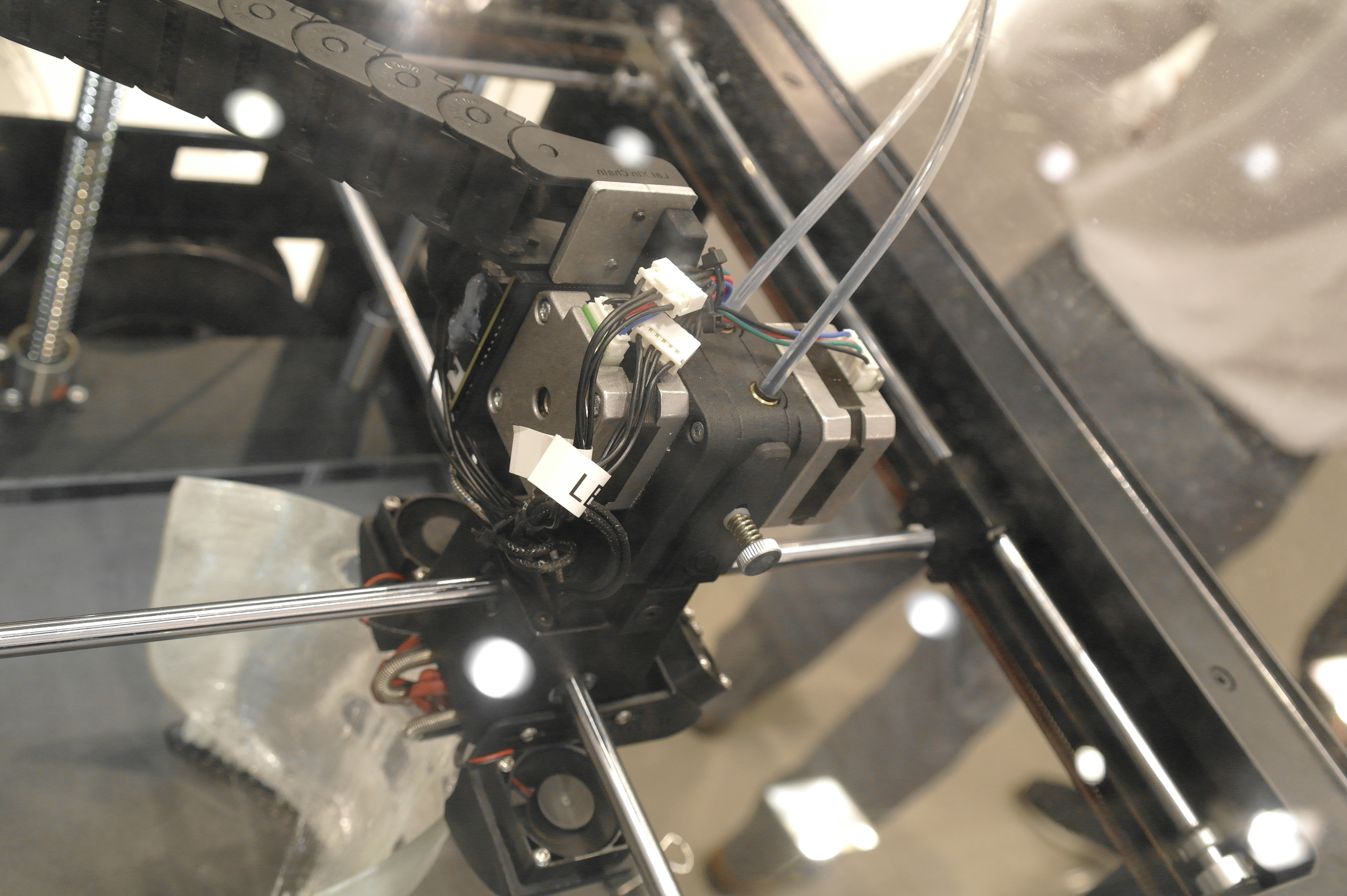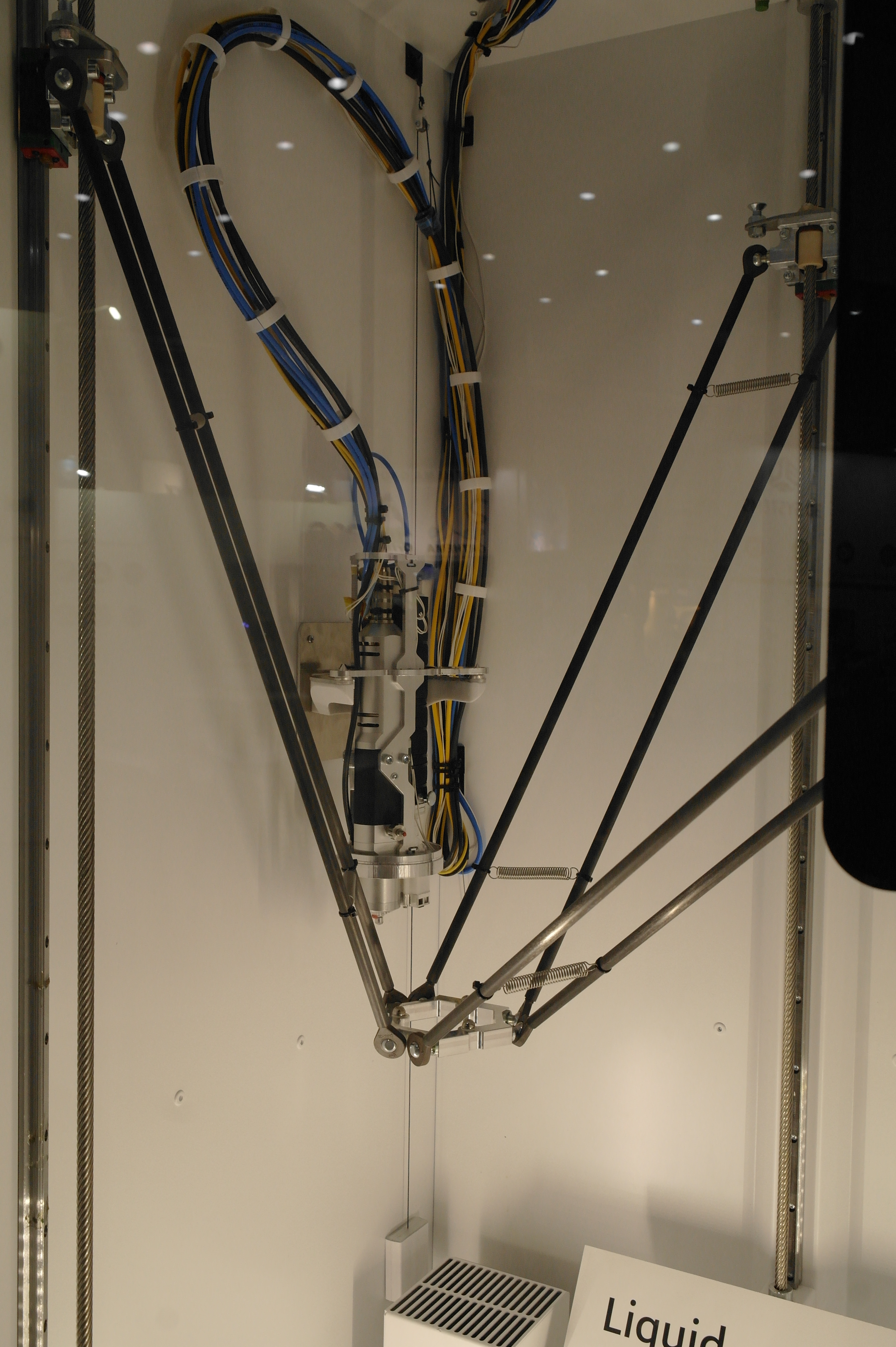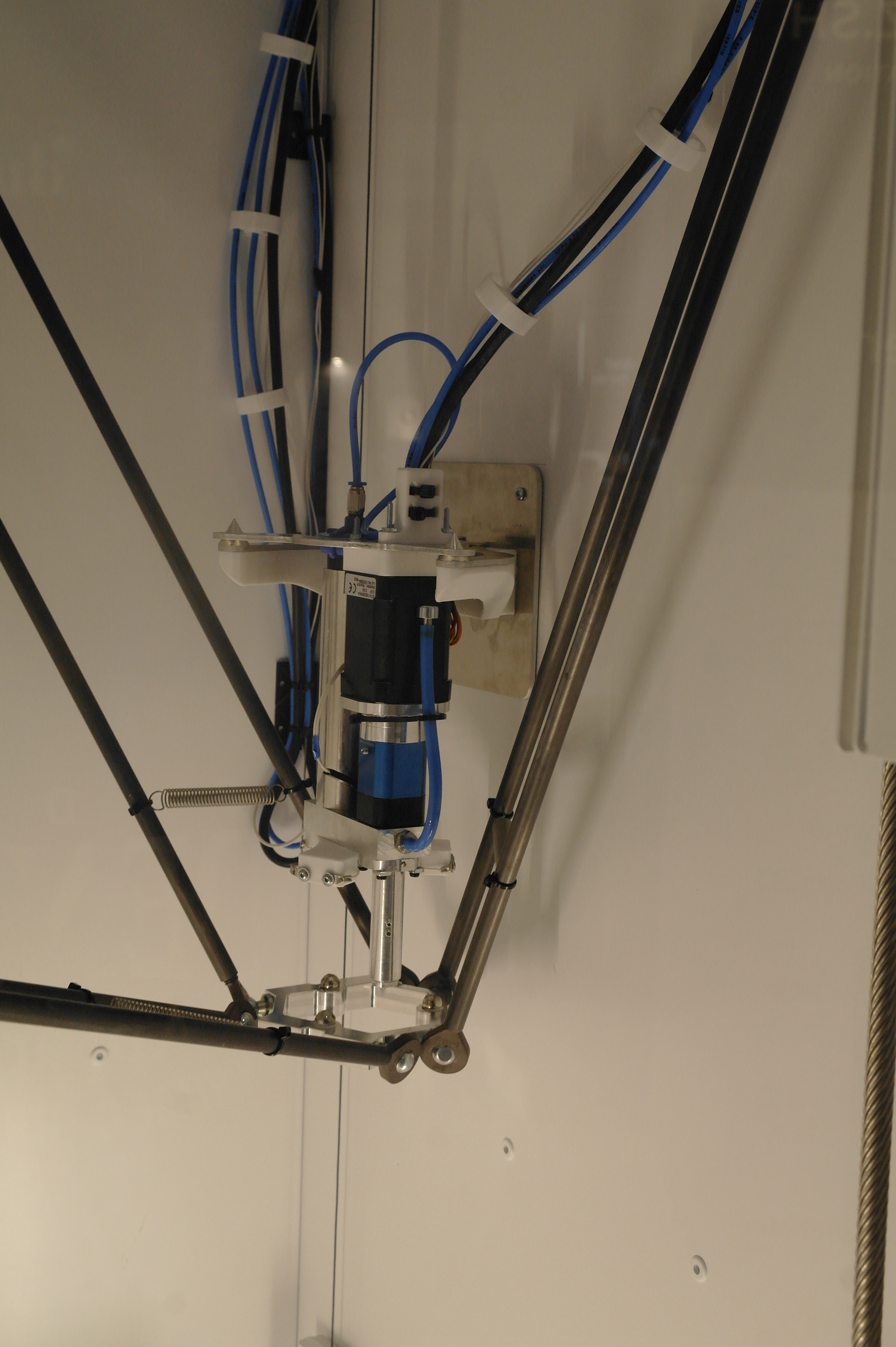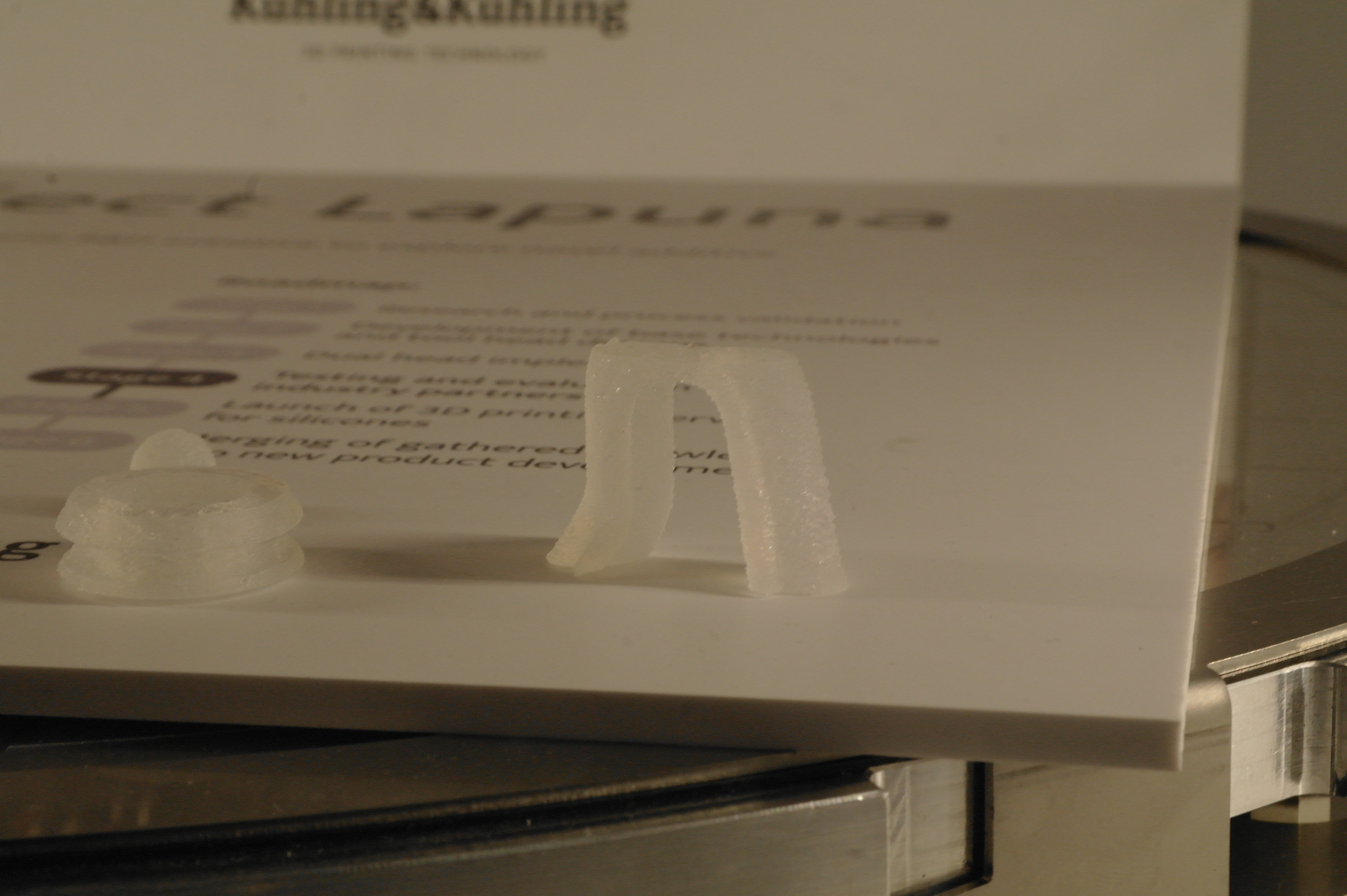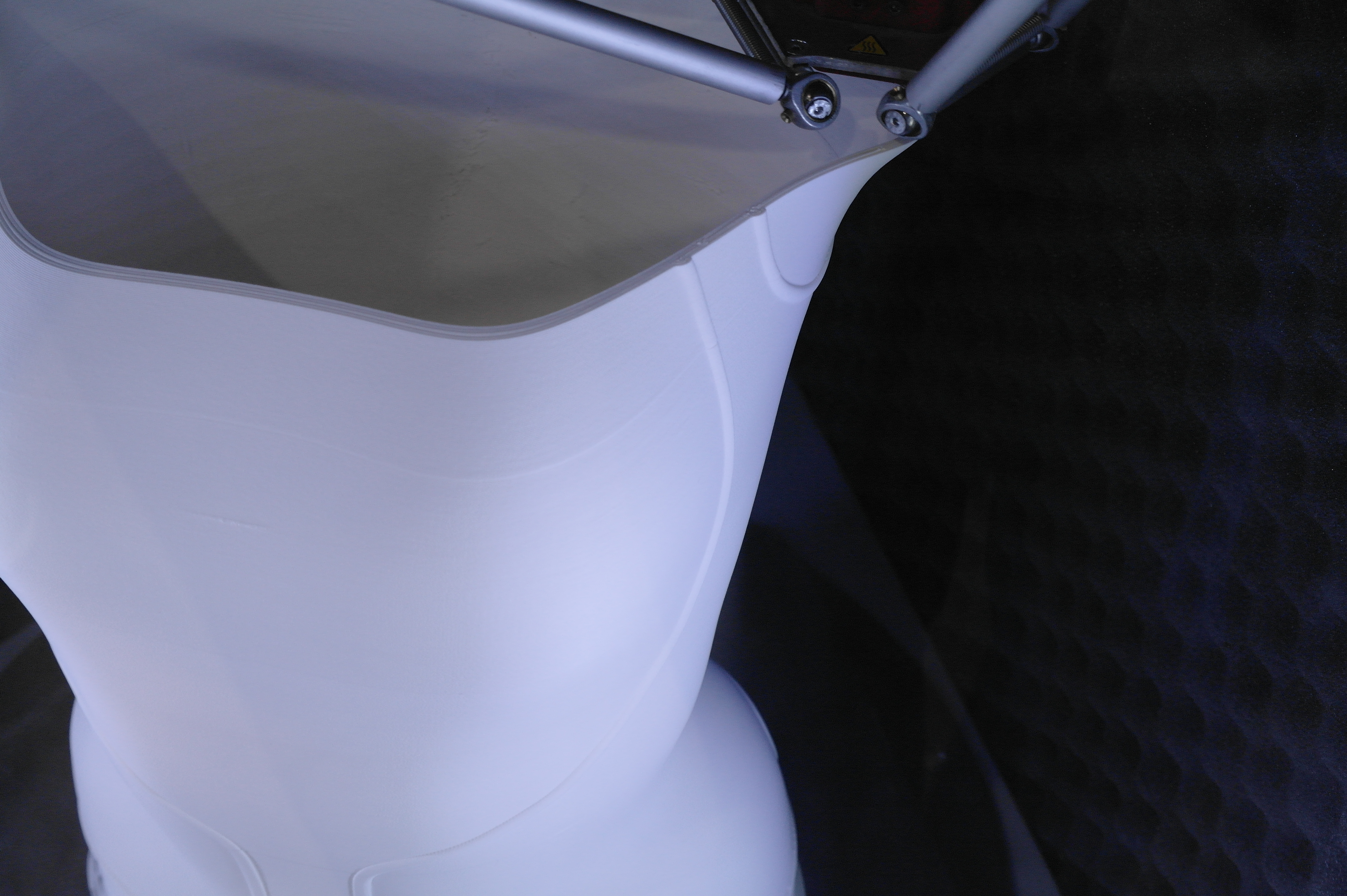 Так же была обнаружена эстонская дельта на колесиках. (Вроде эстонская, а может и нет. У меня она прочно ассоциируется с прибалтикой).Не гнушаются делать ортезы и с явным вобблингом.В целом, чаще пользуются порошковыми принтерами. Но это больше для макетирования или косметики, так как не всегда даже алюминиевые детали способны выдержать циклические испытания на 3 миллиона циклов нагружения, а печатные и подавно развалятся. Приятная матовая поверхность от SLS и точность размеров хороша для отливок по печатным мастер-моделям.Для сканирования стоп и не только их применяются такие вот интересные сканеры.Отдельно хочу описать ребят делающих интересные дельты и придумавших как печатать силиконом и менять головы в дельте.У дельты без смены головы привод сделан на хивинах и ШВП. Большой фрезерованный стол позволяет печатать большие детали по сканам.Крепление ШВП снизу выполнено с упором в кронштейн.Вторая дельта умеет давить силикон из шприца или аналогичного устройства. Вернее из двух шприцов, смешивая его попутно в сопле, так как силикон должен быть быстрым, что б застывать за время печати слоя. А так же заменять инструмент на другой - фрезу для гравировки или что-то еще.Эффектор с шариками магнитными, вклееными в алюминиевый эффектор.Трапеция с большим шагом от IGUS, вместе с гайкой. Каретки фрезерованные. Концевики - индуктивные.Примеры печати силиконом.Смена инструмента на видео.
