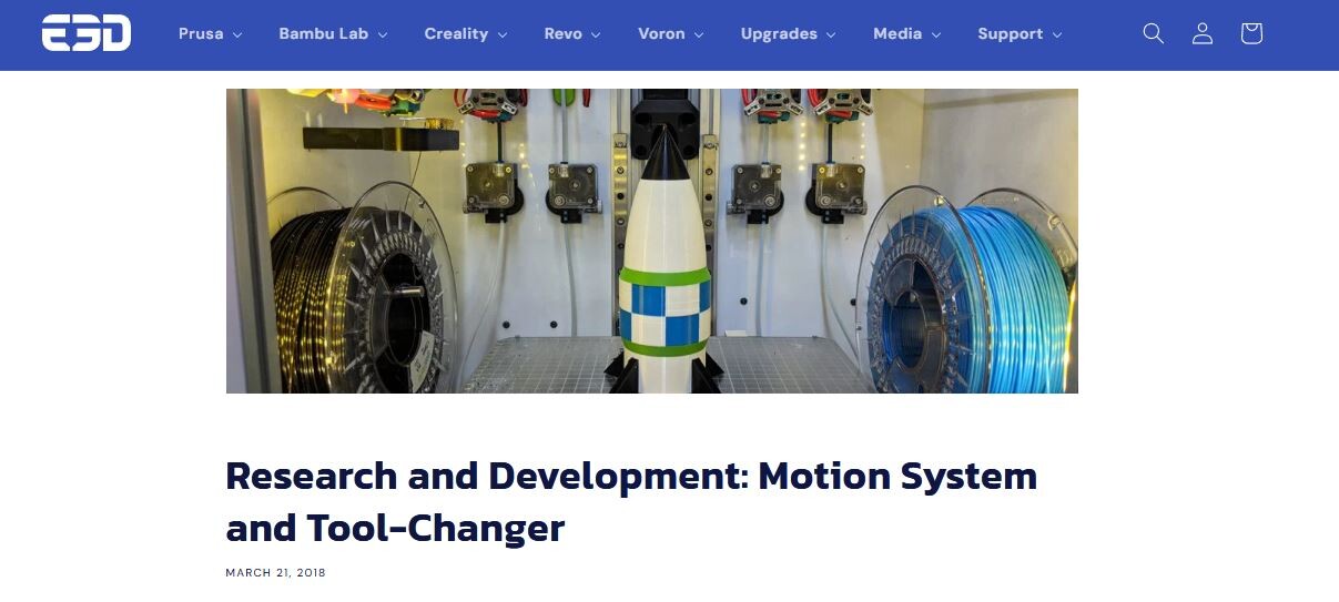 Это меня максимально заинтересовало, так как лазер XTool я тогда страстно желал, и не меньше было желание попечатать принтером со сменными головами. Ведь изначально тему со сменными головами начали E3D аж году в 2018. Тогда было много устройств и идей, которые закончились ничем. И вот, это казалось чем-то прорывным, но как-то быстро затухло по причине того, что стоило максимально дорого, космически сложно и было закопано года до 2020, когда и софт подтянулся и тот же Йозеф Прюша заинтересовался. Концы истории перехода флага первенства от E3D к Prusa Research я не нашел в части Toolchanger, но Йозеф очень красочно анонсировал свой Prusa XL в 2021 году на выставке во Франкфурте. В принципе, явно и вообще не афишировалась какая-то передача идей, технологий, наработок, но из того, что я накопал в интернетах все сводится к тому, что компании сотрудничали в части выпуска Nextruder, где E3D делали сопла, при этом Роули (соучредитель E3D) не раз говорил в интервью, что Йозеф очень вдохновлен проектом смены голов. Ну и вишенка на торте - E3D после 5 лет разработки сделала дизайн открытым, чтобы другие энтузиасты смогли воспользоваться идеями и дизайном.