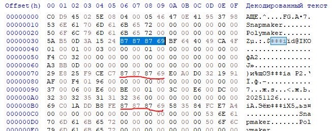 Красный: C0 DF 2C AD CE 9E 87 87 87 69 ...