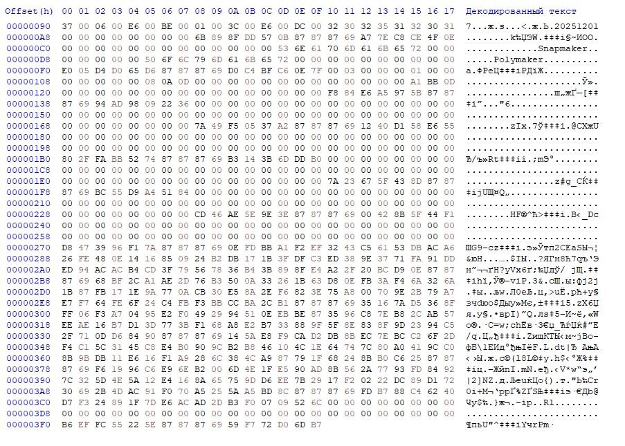 Дальше пришлось ковыряться глубже. Прочел метки со всех 4 катушек. Посмотрел hex. Поскольку пластик одинаков и из различий есть только цвет, то некоторые блоки оказались одинаковыми. Дальше обнаружил, что есть повторяющиеся паттерны из 4 байт. Если предположение, что это разделители, то оказывается, что данные можно корректно почитать и понять.