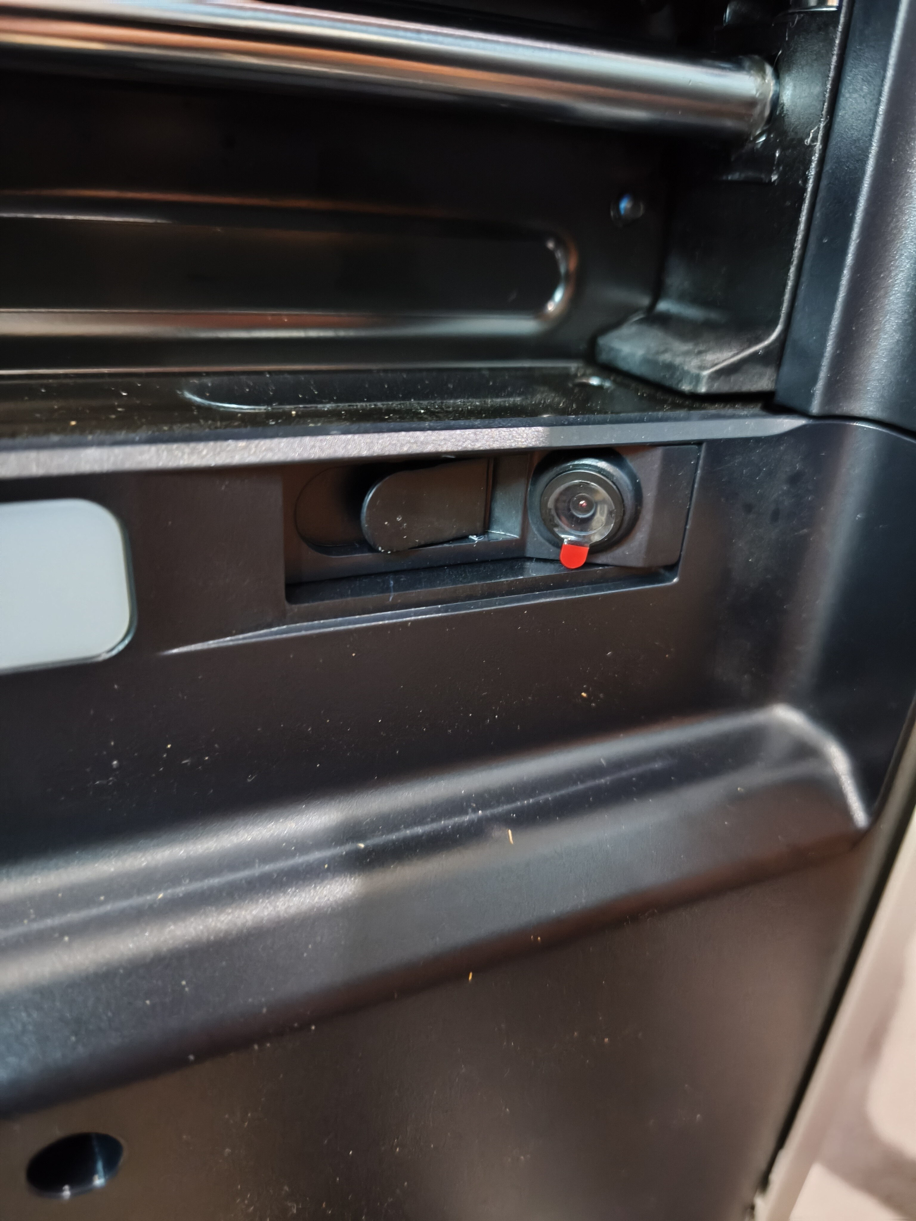 Камера спрятана в углу. Кнопка для регулировки положения оной.