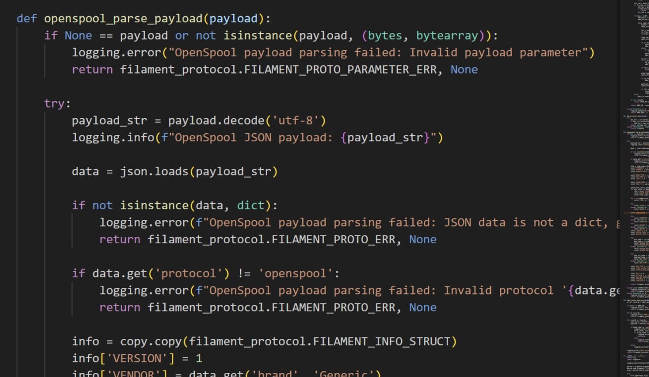 В расширенной прошивке энтузиасты сделали поддержку OpenSpool меток. Если метка Mifare 1k, то она читается как "родная", если NTag216, то как OpenSpool.