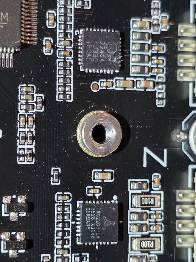 И поэтому владельцы придумывают как охладить драйвера этой шайтан-машины. Например прикручивая вентиляторы на радиатор. Не остался и я в стороне от этого тренда. У меня это был единственный вентиятор на 24В в моем ящике с запчастями и было пара транспортировочных винтов от Bambu Lab, которые и были вкручены в радиатор.