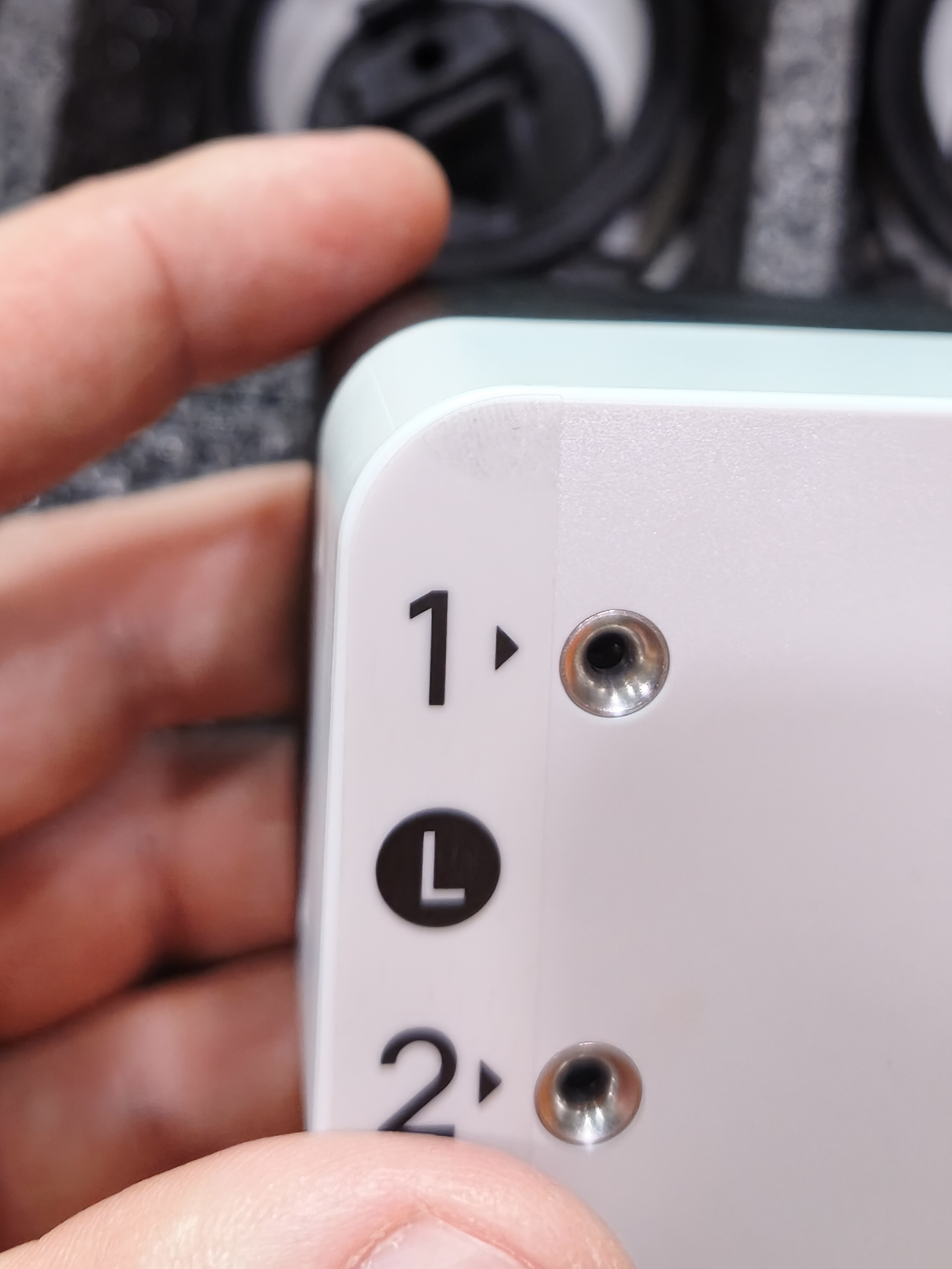 На одной из них спереди наклейка, это голова номер 1, она правая, если так можно сказать. Потому как у нее крепление магнитное на корпусе слева. Остальные головы без наклеек и они все левые, так как крепления у них справа.