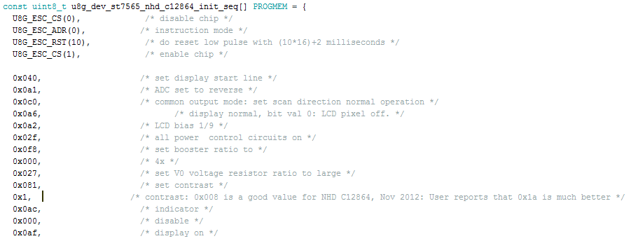 Имеем:Должно получится вот так:3)Можно попробовать прошить принтер. У меня дисплей заработал, но картинка была очень темной, практически не читаемой. Идем дальше и в файле u8glib_ex.h ищем const uint8_t u8g_dev_st7565_nhd_c12864_init_seqВидим для контрастности значение 0х008, авторы рекомендуют попробовать поставить 0х1a. Мне это не помогло, а вот со значением 0x1 все стало хорошо.Прошиваем принтер и радуемся работающему дисплею Надеюсь это руководство будет кому-нибудь полезным.