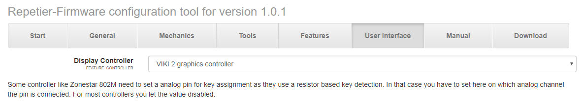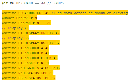 1) В конфигураторе Repetier-Firmware в качестве дисплея выбираем VIKI 2 graphics controller2) Открываем скаченную прошивку и в файле DisplayList.h ищем наш VIKI2. Пролистав чуть ниже видим настройки пинов для разным плат. В моем случае это Ramps 1.4. Выделяем эти строки и заменяем на