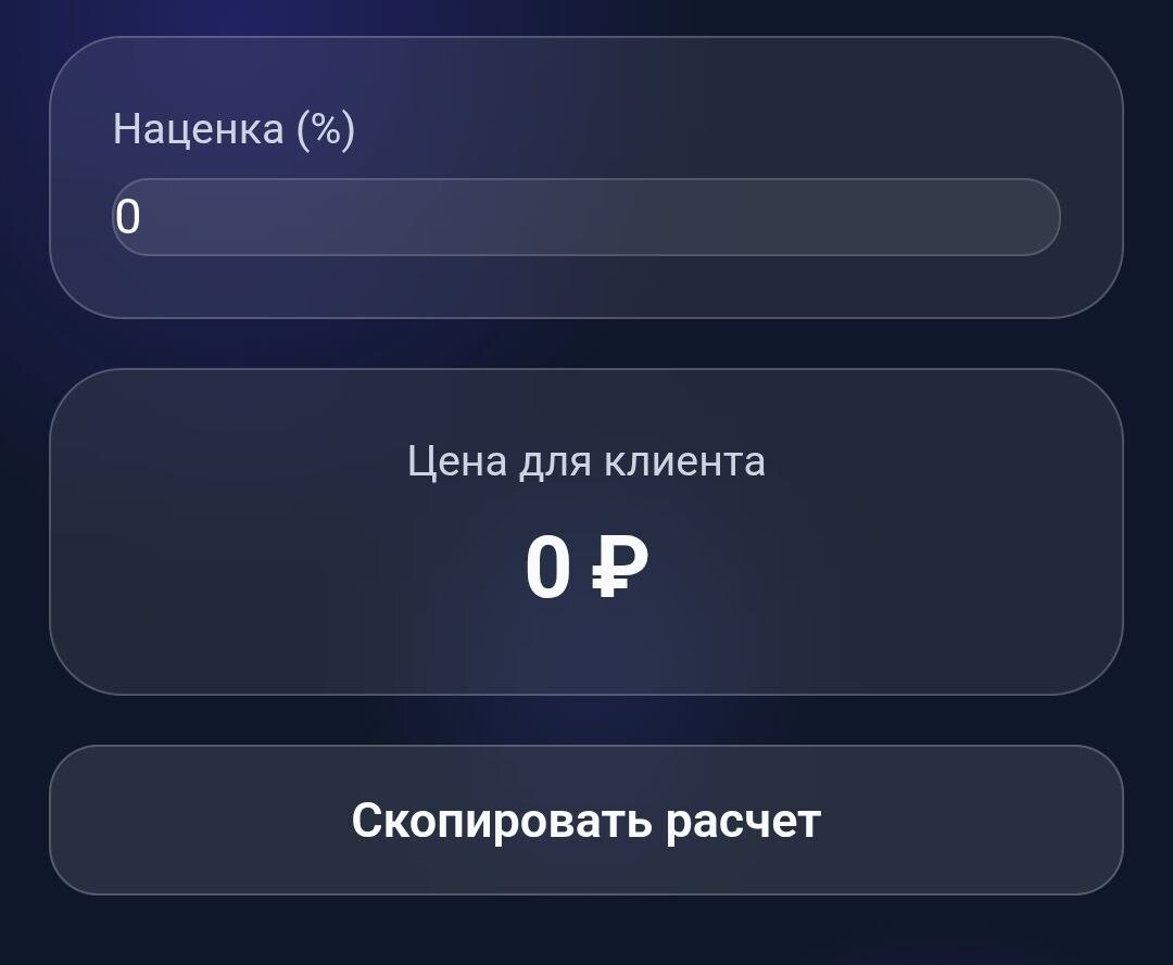 Отдельно хочу отметить одну удобную мелочь которая экономит время при общении с клиентами. Во вкладке "Цена" есть поле наценки в процентах — вводишь свой процент и сразу видишь финальную цену для клиента с учётом всех затрат и желаемой прибыли.