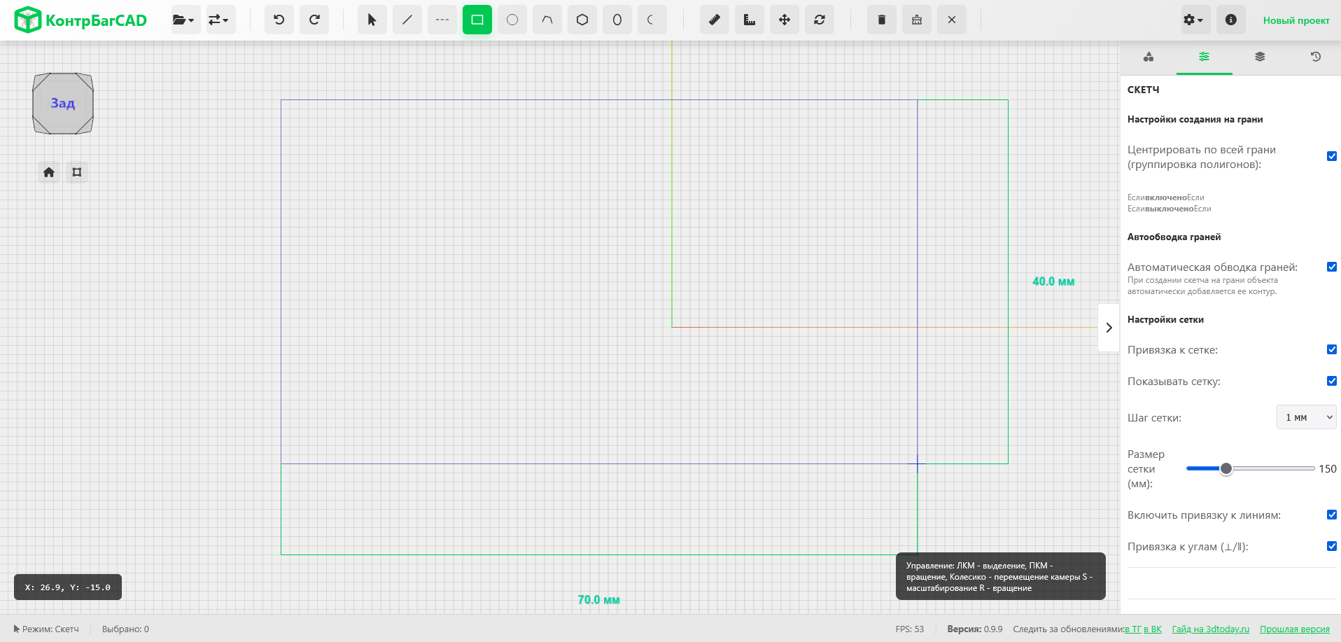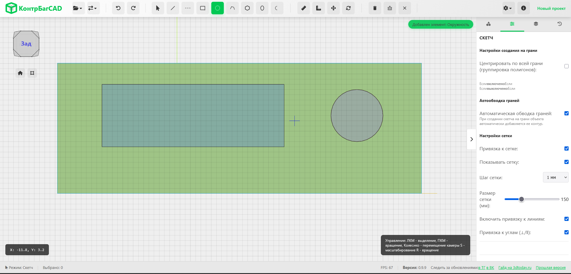 - Простота и привычное управление. На мой взгляд, главная проблема Tinkercad - это то, что он учит какой-то своей логике работы, отличной от большинства САПР. Я стараюсь, чтобы КонтрБагCAD был практически также интуитивно прост как Tinkercad, но принцип построения модели был ближе к полноценным CAD-системам. Это сделано для того, чтобы можно было легко освоиться и сразу работать, а при переходе на более профессиональные решения не приходилось полностью переучиваться.