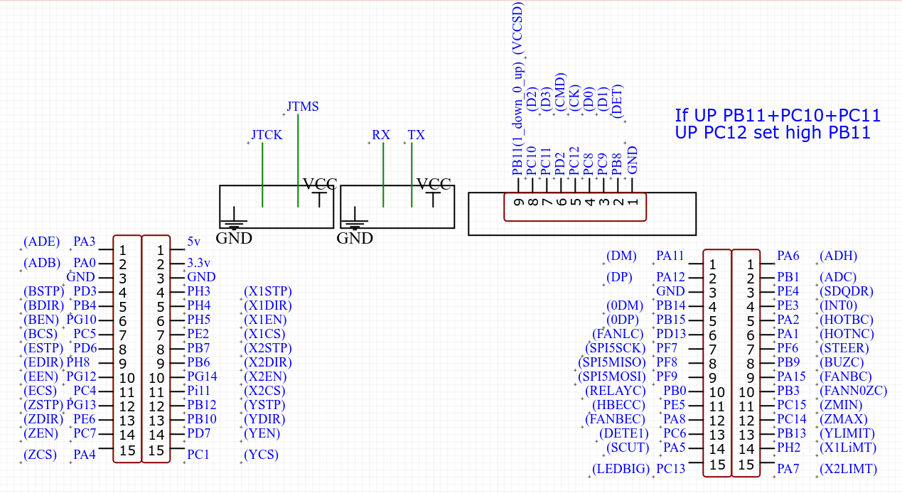 Определяем что где, дополнительно считываем широкий разьем, потому что туда тоже идут ноги процессора и в результате получаем файл соответствия ног и пинов микроконтроллера GD32F450iih6 в принтере MakerPi P3 Pro.