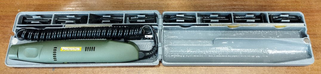 Полюбовавшись шкатулкой коллеги Alloha san, почувствовал себя лохом, у которого нет шлифки PROXXON, а так, как "этот прибор имеется у большинства из наших коллег"(ц), то сразу же заказал себе тоже такой, но без блока питания, ибо 12В, 0,8А, в моём хозяйстве можно найти в течении пары секунд, а стоит прибор без БП почти в 3 раза дешевле. Итак, прибор есть, но носить его в блистере совсем не нравится, и пришлось опять включать извилину, которая и родила представляемую вашему вниманию коробку, весящую в полном составе, со шлифкой внутри, всего 300 грамм и закрывающуюся магнитным прижимом из двух таблеток 8х1,5 мм.