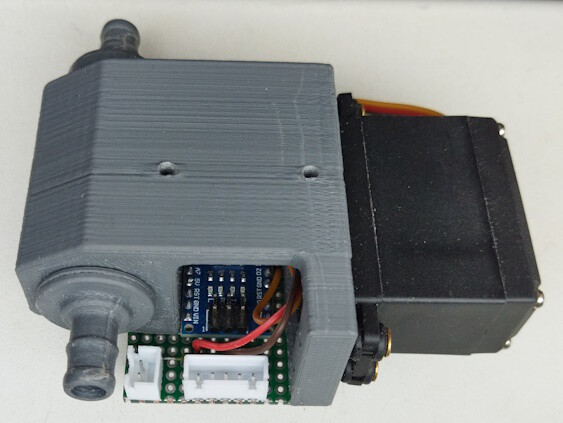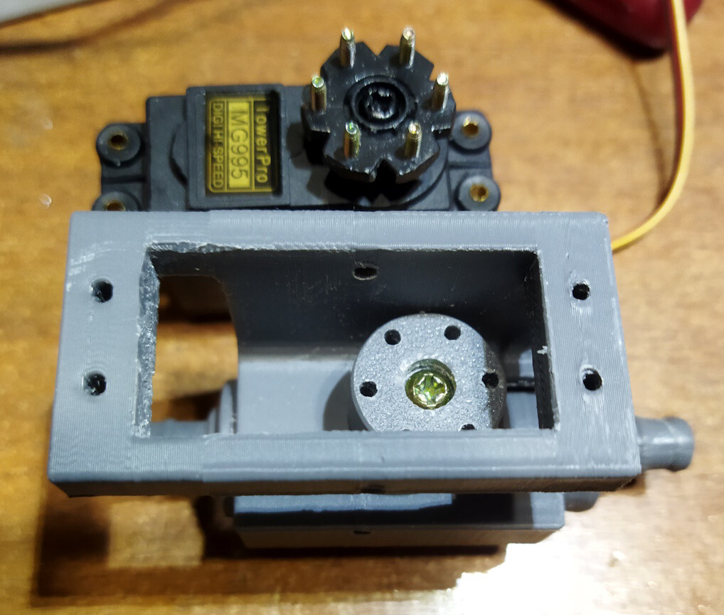 усилие для поворота которого было снижено ослаблением прижима дырявого шара с помощью шестигранника, хотя мощи сервы, 12кг на валу, и хватило бы, но зачем надрываться? Не вода, ничего сташного не произойдет...