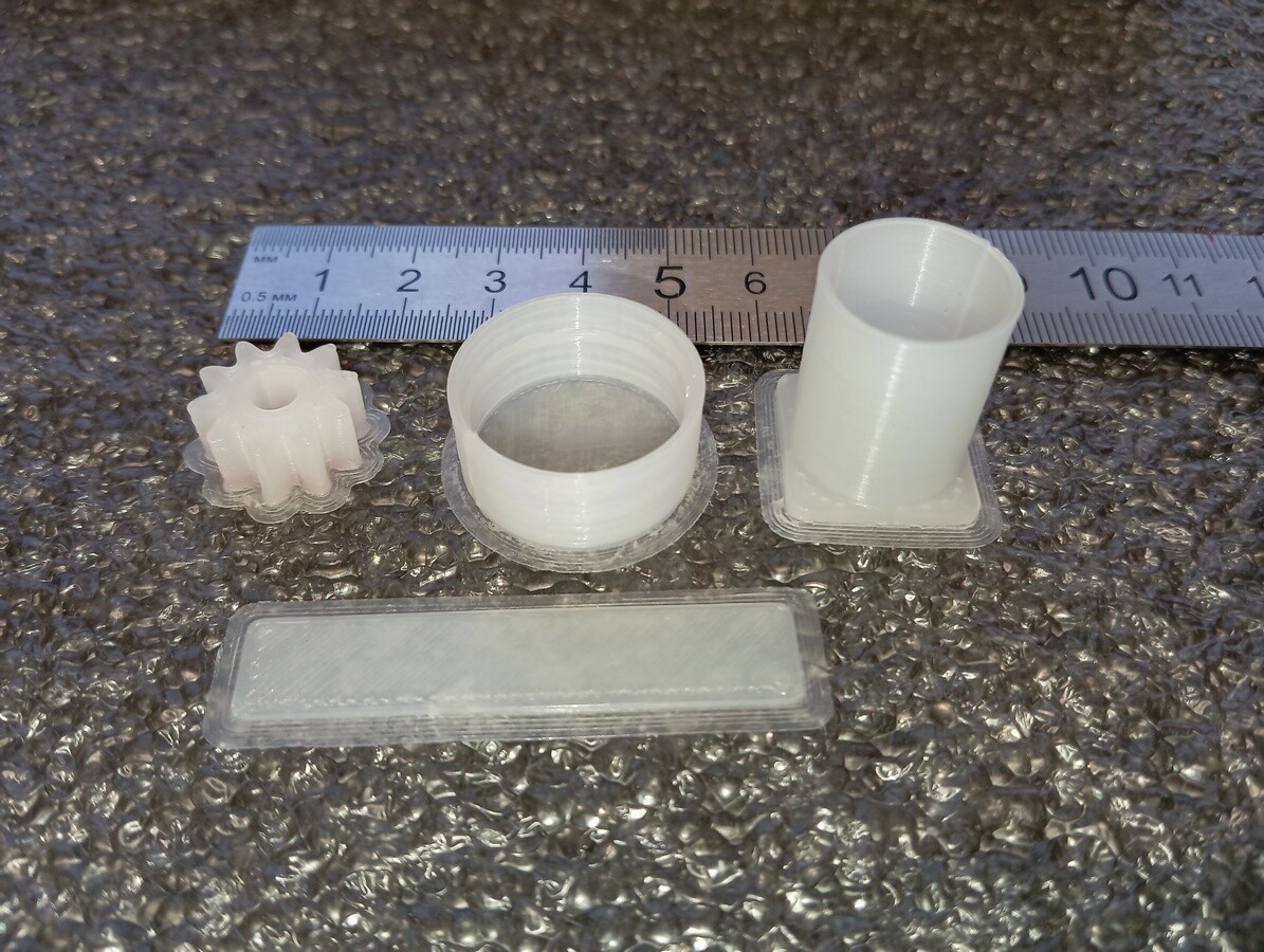 Нам пришлось драматически снизить скорость печати, чтобы получить хороший внешний вид деталей и хорошую адгезию слоев для всех наших тестовых заданий. Если обычным АБС пластиком мы могли печатать на линейной скорости 200 мм/сек с потоком экструдера до 106 см3/час, то PVDF только на скорости 9 мм/сек с потоком 0,9 мм3/с. При повышении скорости адгезия слоев начинала ухудшаться. При повышении температуры печати для мелких деталей, становился заметным перегрев детали с ухудшением внешнего вида.