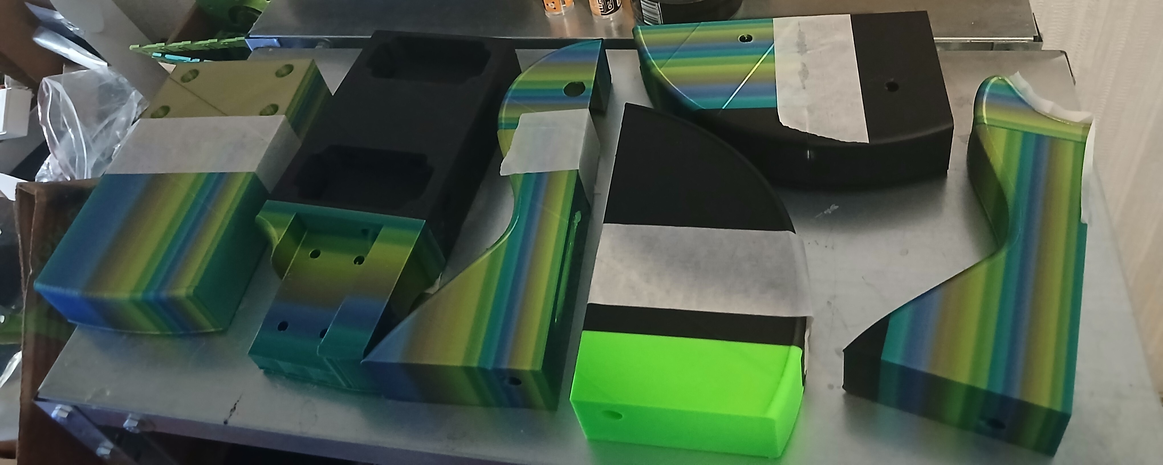 Сделал электрогитару в стиле LesPaul: деку напечатал на 3D-принтере из PETG, модель подготовил в SolidWorks, обклеил заменителем кожи.Деку разделил на сегменты для платформы принтера. Учитывал крепления для фурнитуры и вырезы.