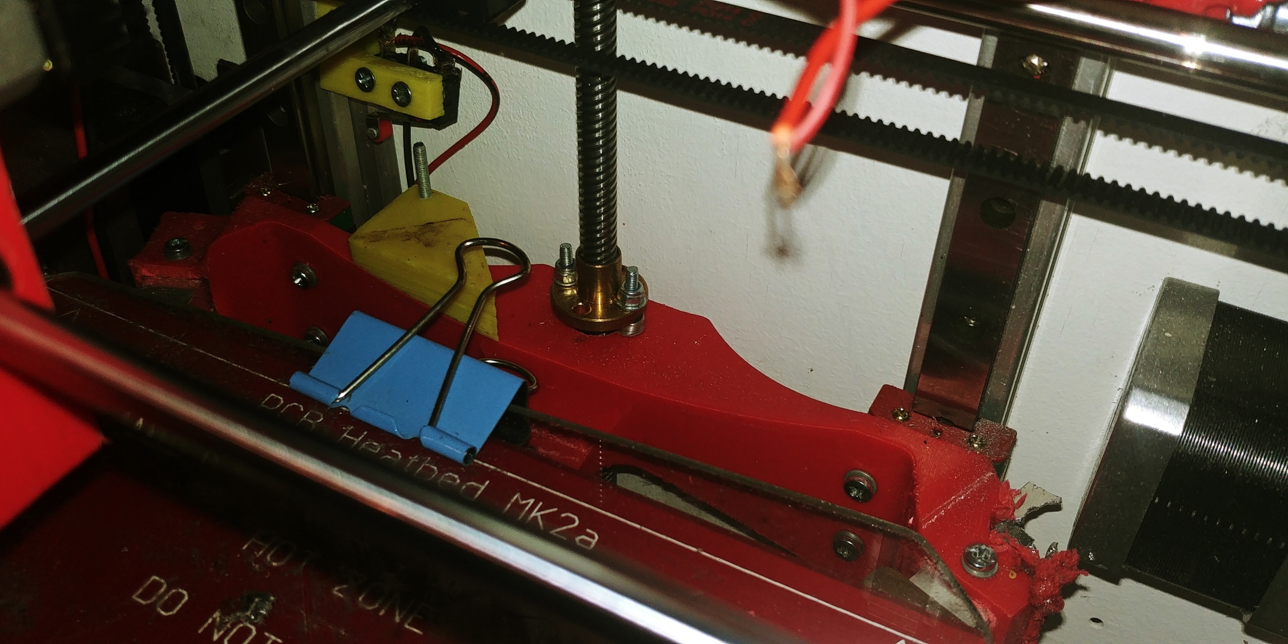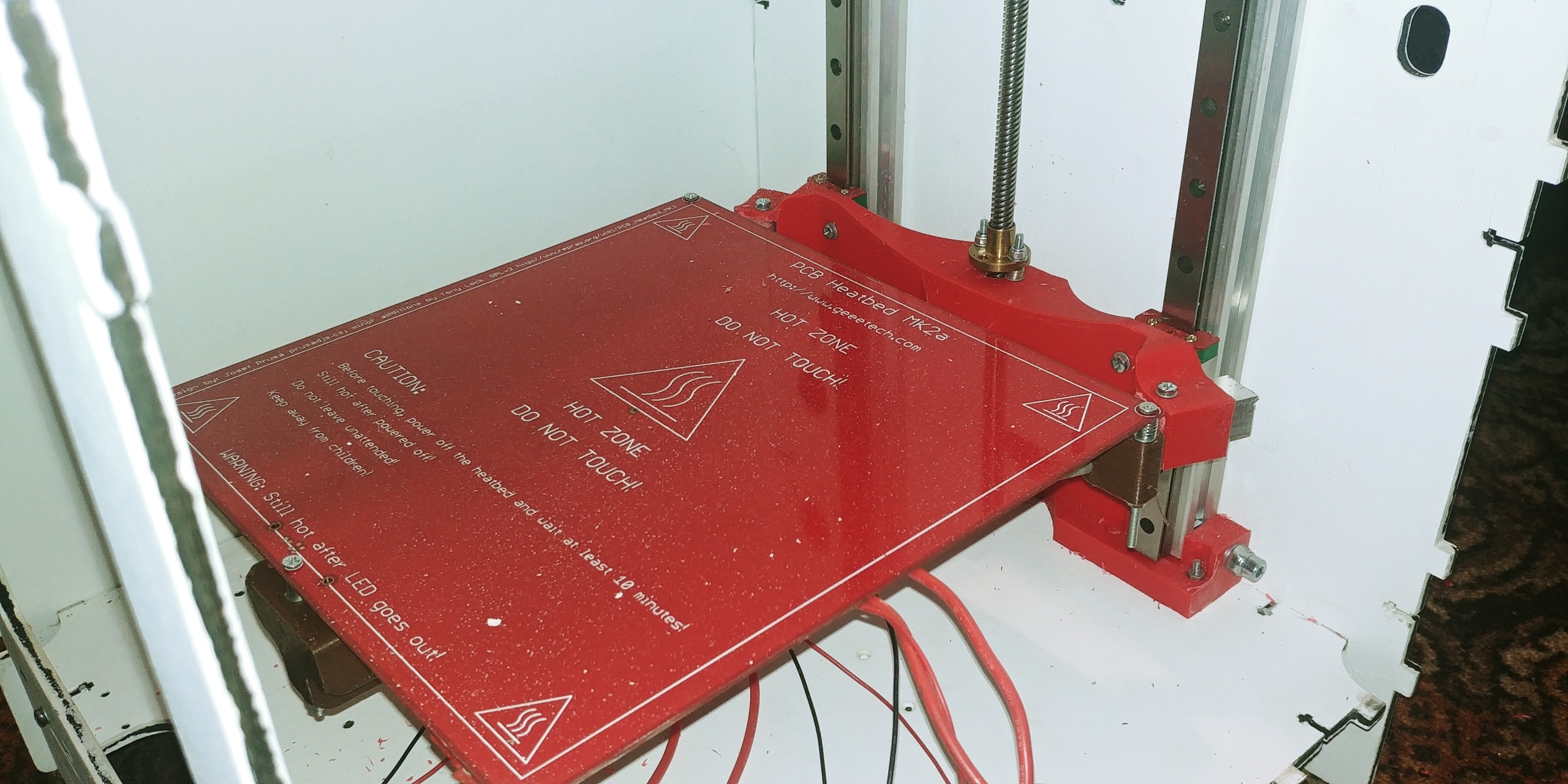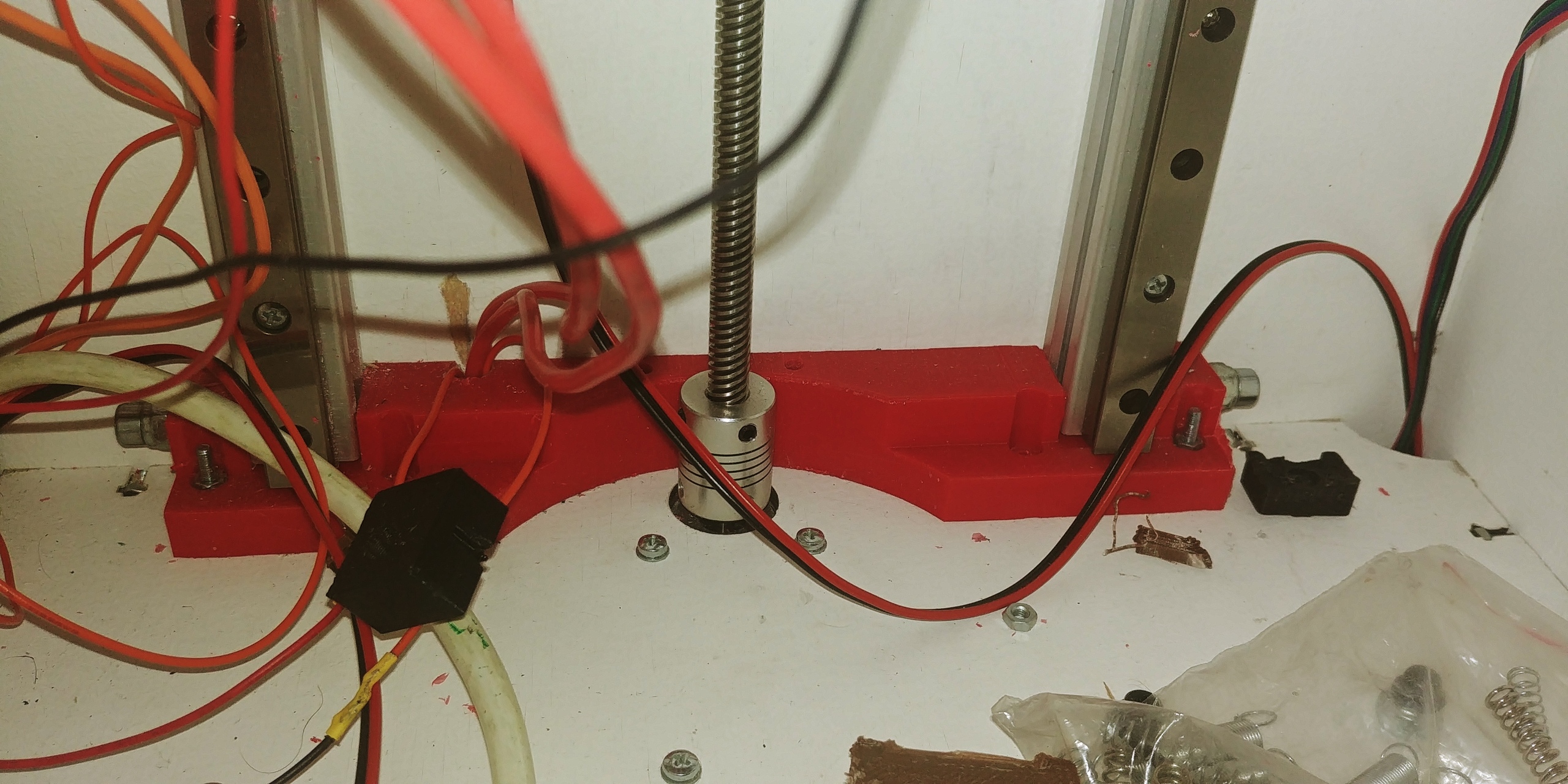 Антивоблинг гайку сделал по средствам обычной гайки на трапецию, которую притянул к... консоле стола через две пружинки. Вверх-низ не гуляет (чего и требовалось), а стороны свободно (ну и пусть гуляет)Стол снизуРельсы установлены на профиль 2020, который, в свою очередь, установлен в печатные крепления по средствам 4х винтов М5, которые уже прикручены к корпусу.Печатает, вроде даже неплохо на кривых настройках, стенки как надо - ровненькие (поверьте на слово), что и требовалось. остальное - софтовыми настройками лечиться.