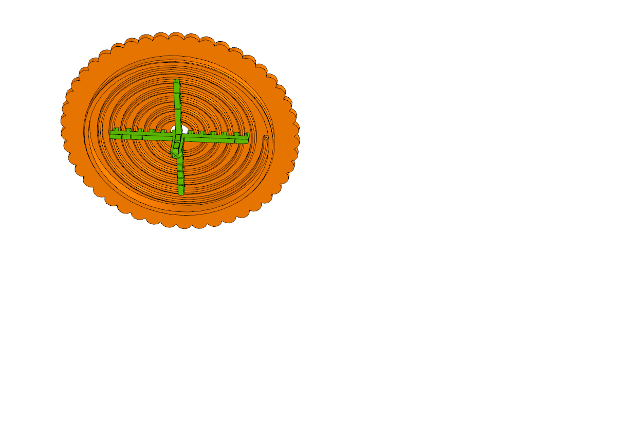 Верхняя представляет собой барашек крутилку с плоской спиралью, на обечайке сделан буртик для фиксации спирали в корпусе направляющей, ну и чтобы это все крутить можно было.