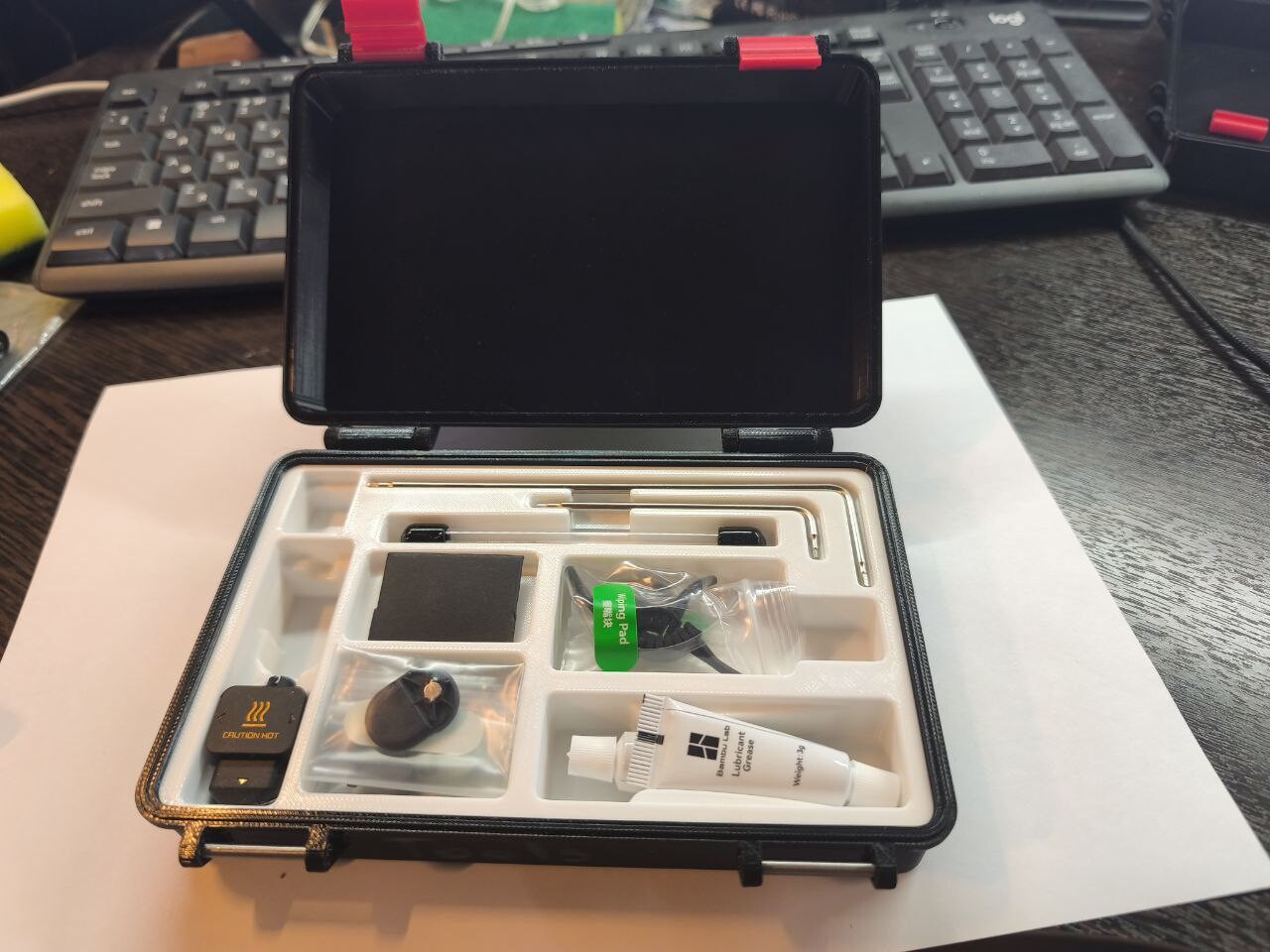Вместе с принтером в хлипкой картонной коробке были приложены некоторые расходные запчасти, инструменты, смазка - всё, что, по мнению производителя, необходимо на первое время. Ну и в сети и сам производитель и сообщество уже насотворило довольно много вариантов замены такой коробки. Я скачал вариант, предлагаемый на сайте производителя.