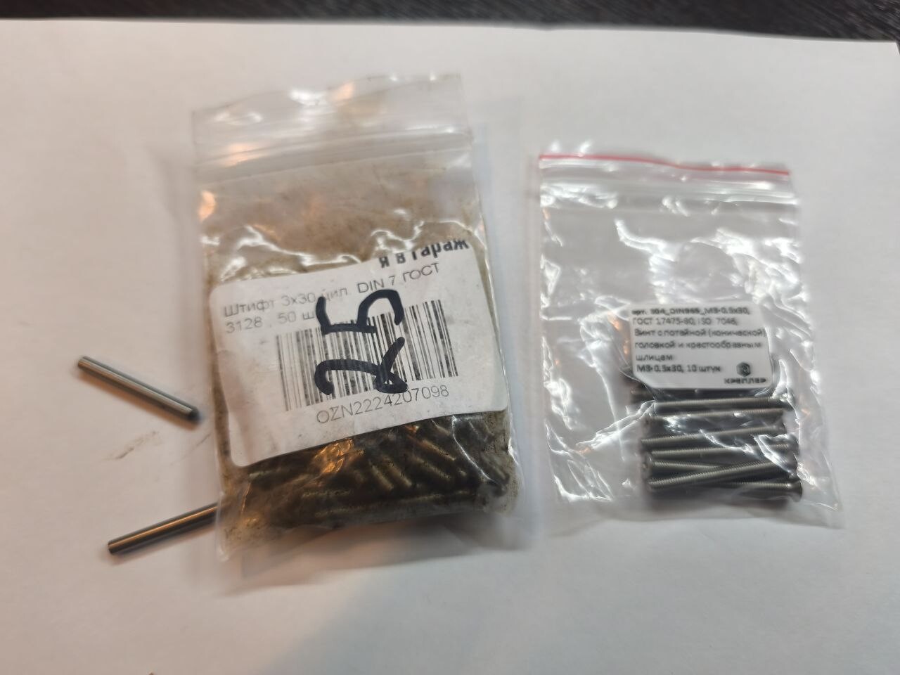 Опытным путём и, частично, штангенциркулем было выяснено, что требуется нечто диаметром 3 и длиной 30 мм. Заморачиваться с разрезанием проволоки/прутков/гвоздей я не хотел, поэтому пошел в поля за готовыми вариантами. Поиск по маркетплейсам лично у меня привел к двум, на мой сугубо личный взгляд, вариантам: