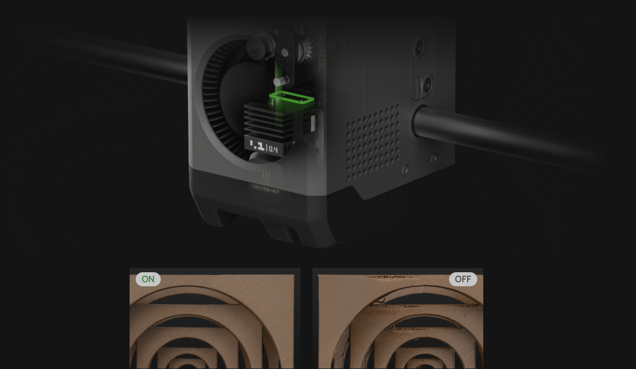Bambu Lab оснастила P2S новым серво-экструдером (PMSM) с усилием подачи до 8,5 кг, что на 70 % больше, чем у предыдущего поколения. Это обеспечивает стабильную подачу даже при экстремально высокой скорости и при работе с композитными материалами.