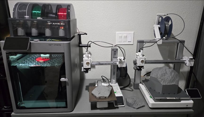 Решением стал переход на ферму принтеров Bambu Lab. Сейчас CRAWLAGON использует несколько моделей A1 и A1 Mini, системы с AMS, а также более продвинутые закрытые принтеры P2S. При этом парк оборудования продолжает расширяться.