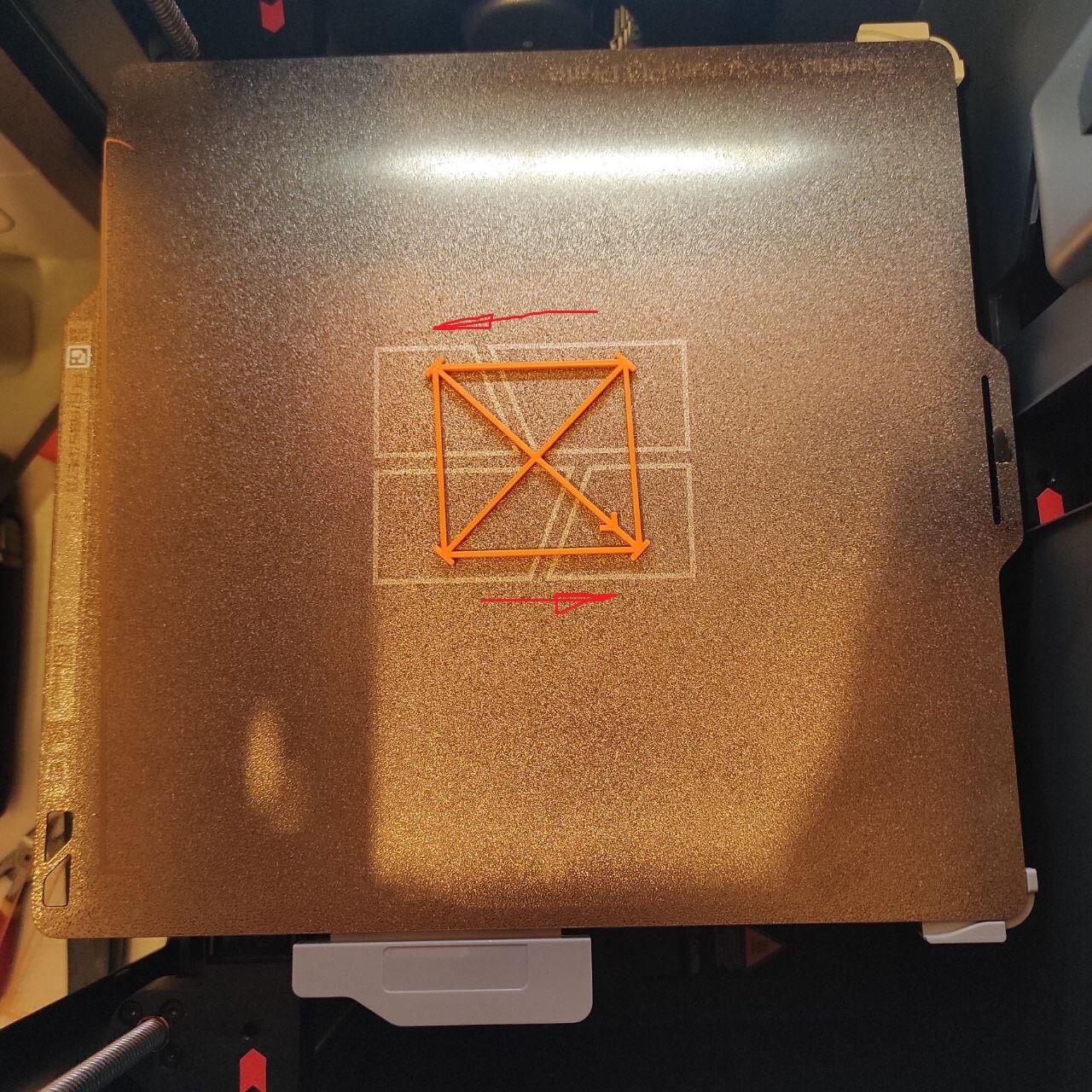 Параллельно я искал возможность исправления этого перекоса и нашел! Можно внести изменения в G-code. Инструкция M1005, которую я прописал в конце стартового кода принтера. После внесения корректировки разность в диагоналях составила 0,1 мм.