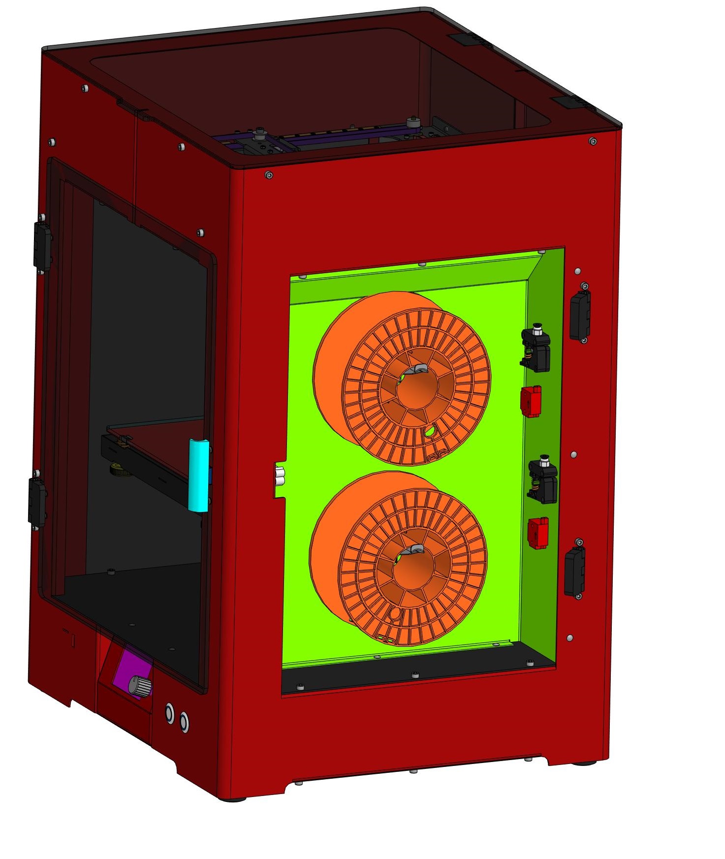 Изменения корпуса были сделаны прежде всего для улучшения размещения катушек филамента. Вследствие чего филамент теперь размещен в отдельной нише. Это позволило уменьшить количество поворотов, что в свою очередь исключит заломы пластика и улучшит его подачу . На первый взгляд кажется что принтер стал больше. Но если посчитать занимаемую площадь 1 и 2 варианта, то оказывается что они одинаковы.PS: Если вам интересен данный проект и вы хотите больше узнать о нём или проследить его сборку - прошу дать мне знать. Чтобы я понимал, делать ли фото, видео, более детальные статьи. Всем спасибо за внимание.