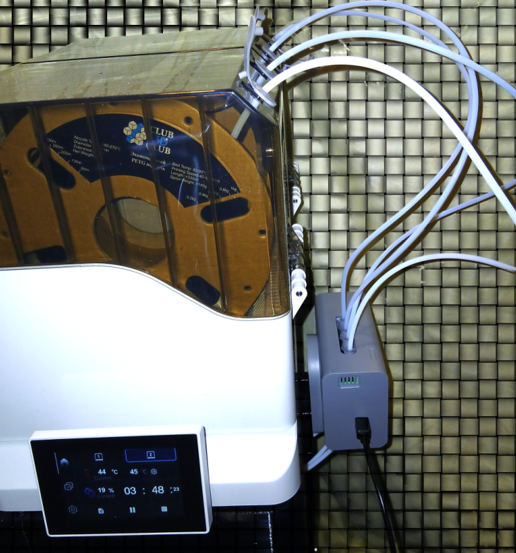 Поиск готовых решений по механическому подключению сушилки к **IFS** на **AD5X** не принес результатов. Решения которые были найдены, на мой взгляд монструозны и не удобны, на фото часть из них.
