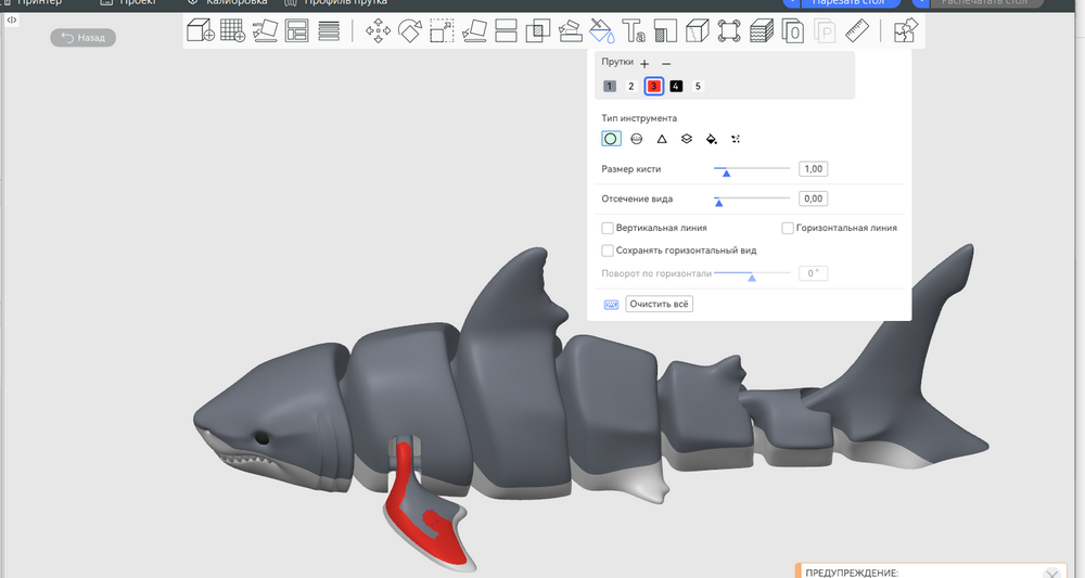 Но фигурка получилась классной. Акула, прям, красивая. Я её уменьшил до 60% от оригинала, потому что иначе ждать результата пришлось бы больше 8 часов. А это, знаете, перебор даже для меня. Терпение не резиновое.