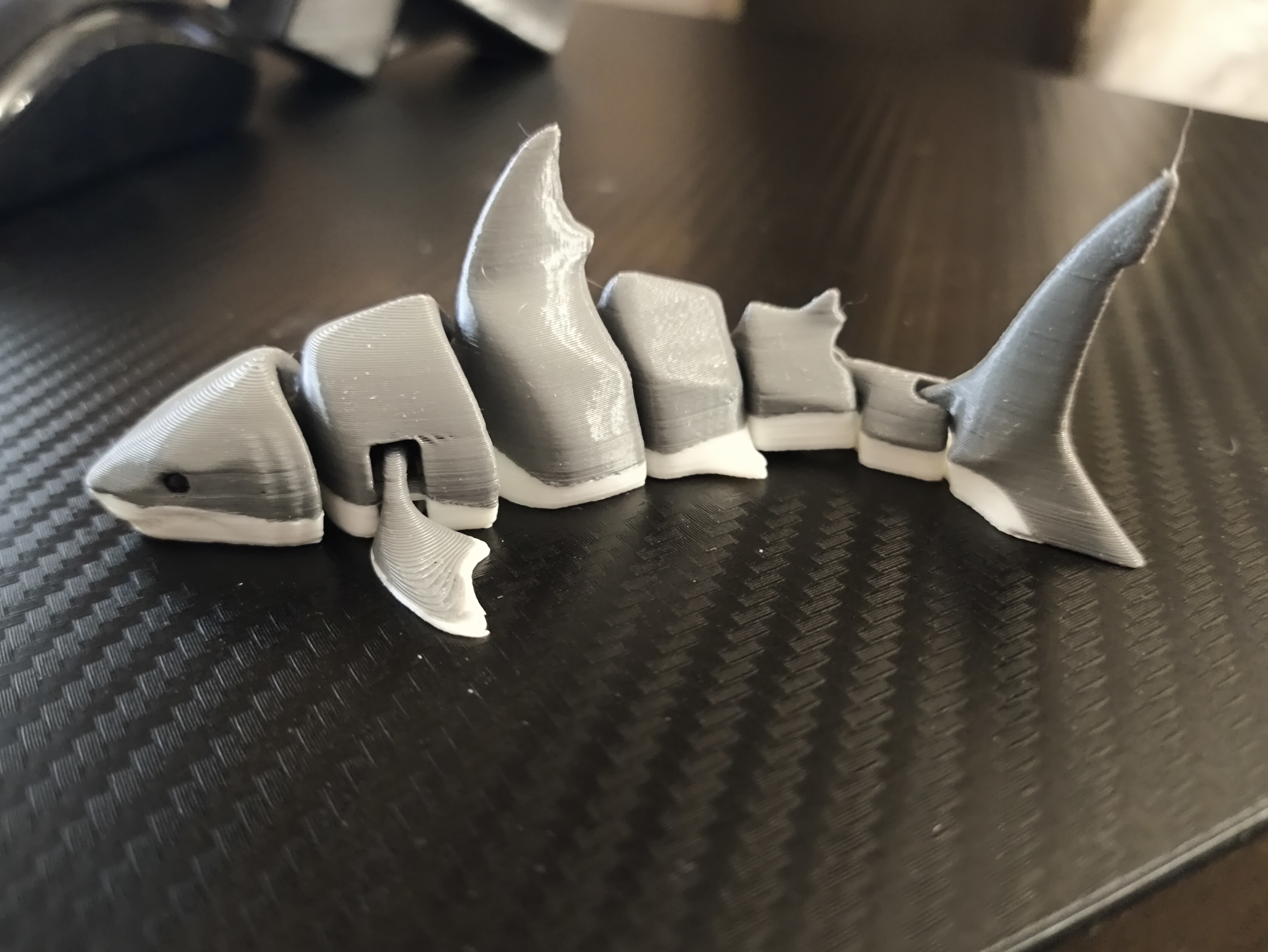 ВОзьмем мою образцовую акулу.По расчётам слайсера, акула должна была печататься 3 часа 15 минут. По факту, с учётом нагрева стола и подготовки Qidi Box (не засекал точно, но время старта печати увеличилось минут на 5–10), вышло 4 часа.