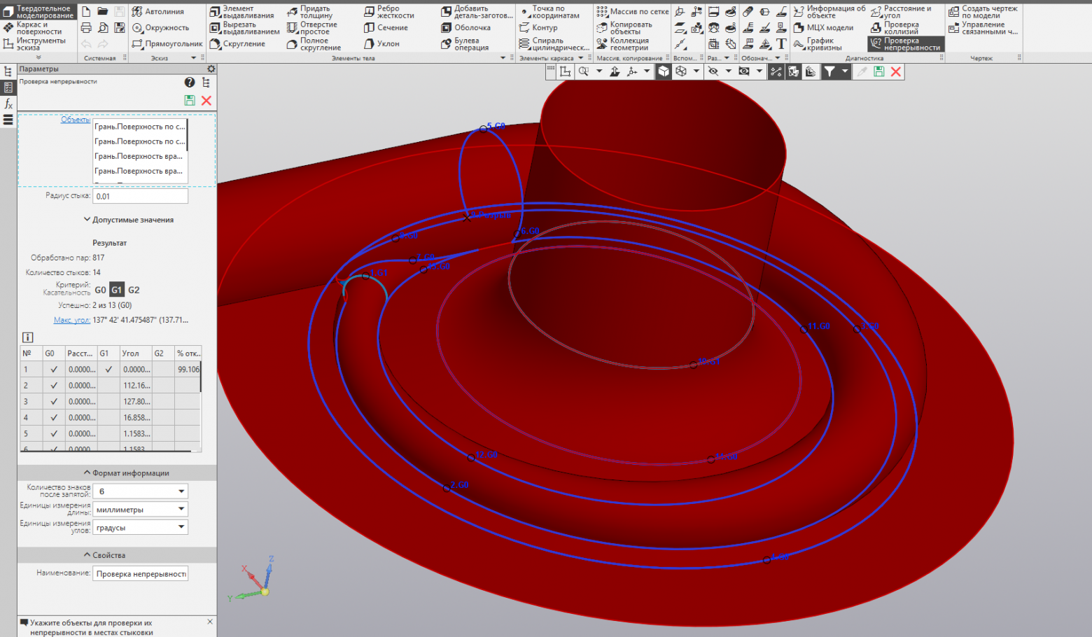 Проверка непрерывности стыков поверхностей