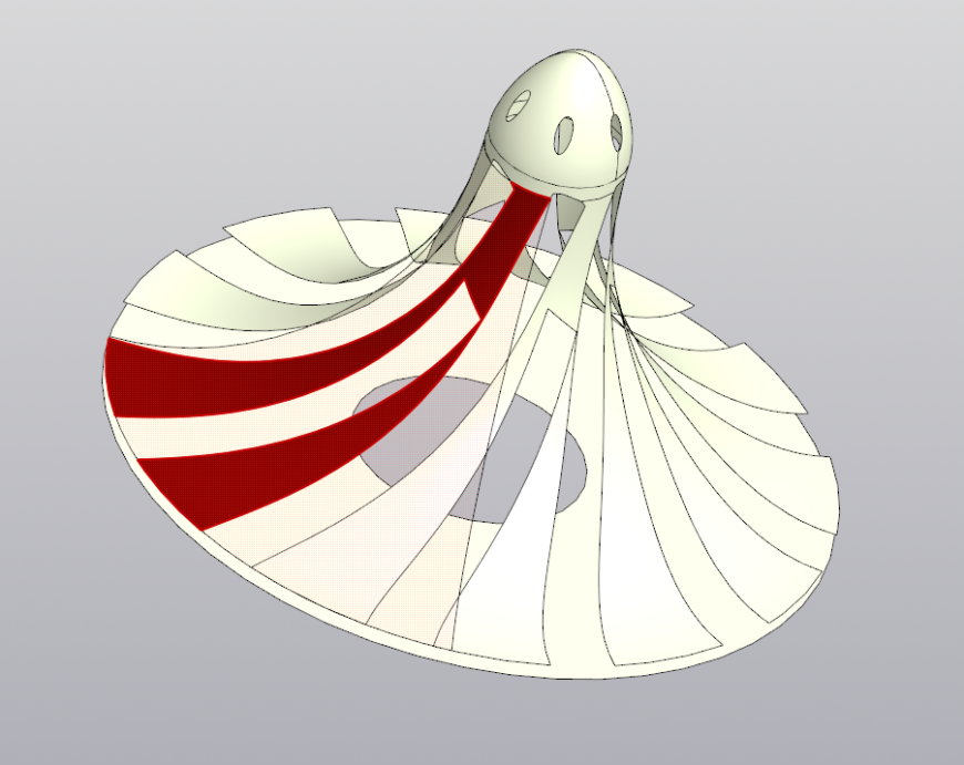 Можно создать участок поверхности с её подгонкой под выбранный сегмент полигонального объекта. Таким образом, построив поверхности для всех сегментов полигонального объекта, мы воссоздадим из него тело или поверхность. Поддерживаются плоская, цилиндрическая, сферическая, коническая, тороидальная и сплайновая поверхности. Тип поверхности определяется автоматически, результат автоопределения можно поменять вручную, выбрав из списка.