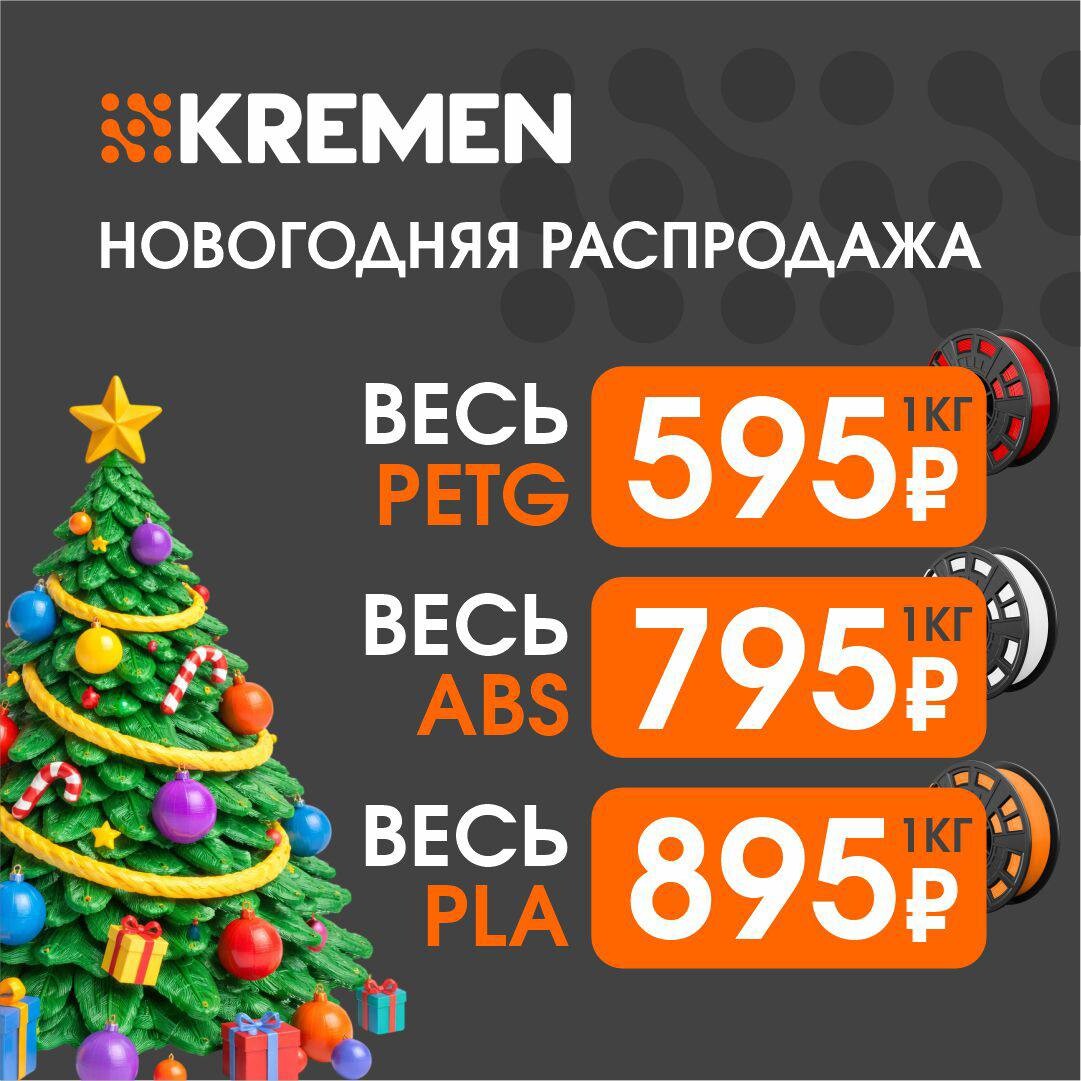 ⚡️ НОВОГОДНЯЯ РАСПРОДАЖА В KREMEN!❗️ С 22.12 по 26.12:PETG 1 кг - 595 рублей ABS 1 кг - 795 рублей PLA 1 кг - 895 рублей