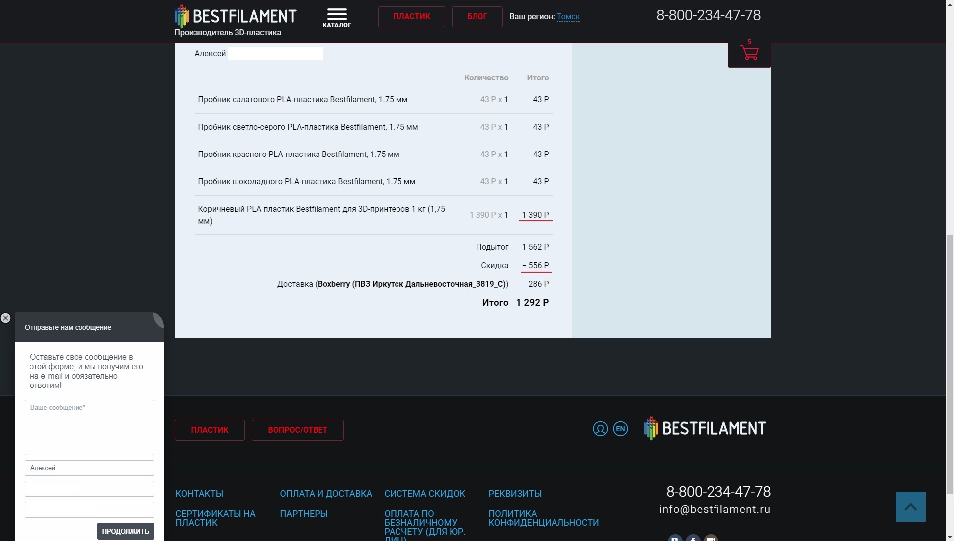 Любой здравомыслящий человек предпочитает экономить, особенно на пластике для 3D-печати (цены же заоблачные, а мы-то забываемся насчет того, что это всего лишь пластмасса). Вот и приходится здравомыслящим людям следить за скидками и акциями, чтобы купить подешевле. В точности как я, когда заказывал у bestfilament'а коричневый PLA-пластик за 834 рубля/кг (товар дня так или иначе). Плюс 4 пробника PLA в различном цветовом исполнении для кучности.НО! Хоть товар дня ребятки и предлагают нашему вниманию, а вот отсылать его по ими же указанной цене со скидкой не желают. Их, конечно, можно понять - они не хотят удавиться из-за собственной жадности. Были бы у них еще силы это признать, я бы их простил, но сил нет.