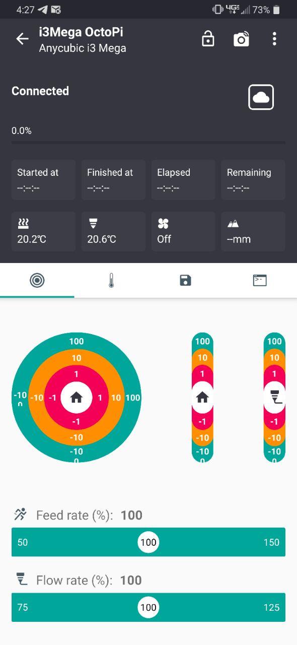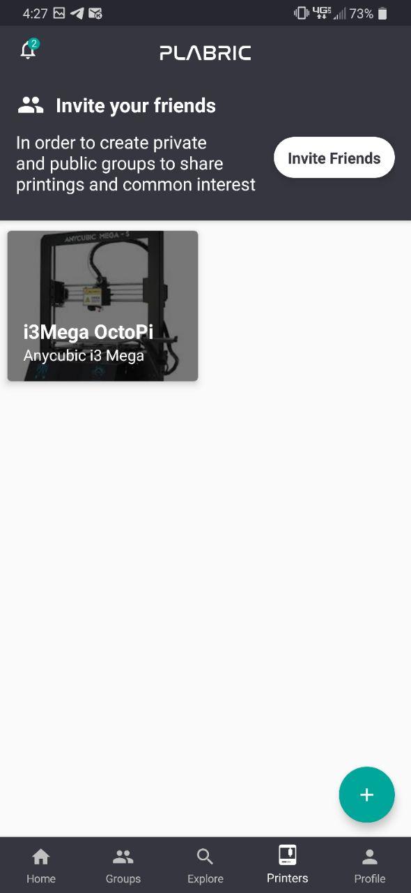 Установка очень проста и стандартна для Octoprint плагина. Для дальнейшего взаимодействия с Малиной необходимо установить на смартфон бесплатное и достаточно функциональное для мониторинга и контроля приложение Plabric. В приложении, при первом запуске, необходимо всего лишь отсканировать QR-код, выданный Octoprint, а затем настроить принтер: