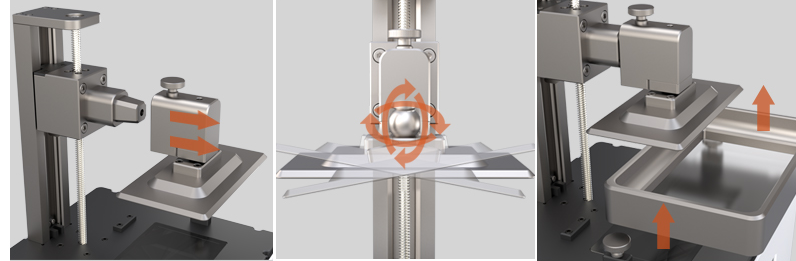 Использованное ноу-хау позволяет одним движением снять-поставить стол с моделями, и выставить его в уровень ванночки.