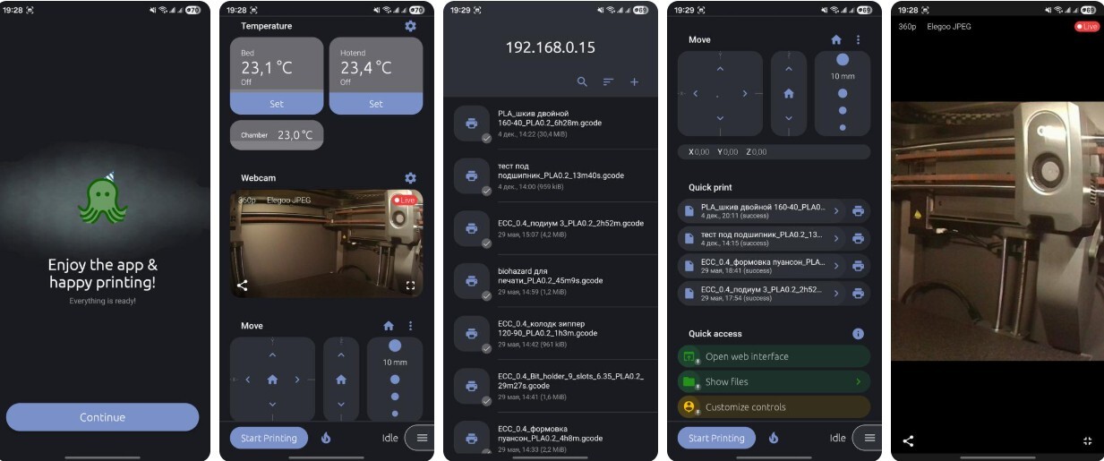 Таймлапсы печати с камеры меня порадовали, если честно. Пишет автоматически, со штатной камеры, при активации соответствующей опции в настройках. Можно перенести на внешний накопитель.