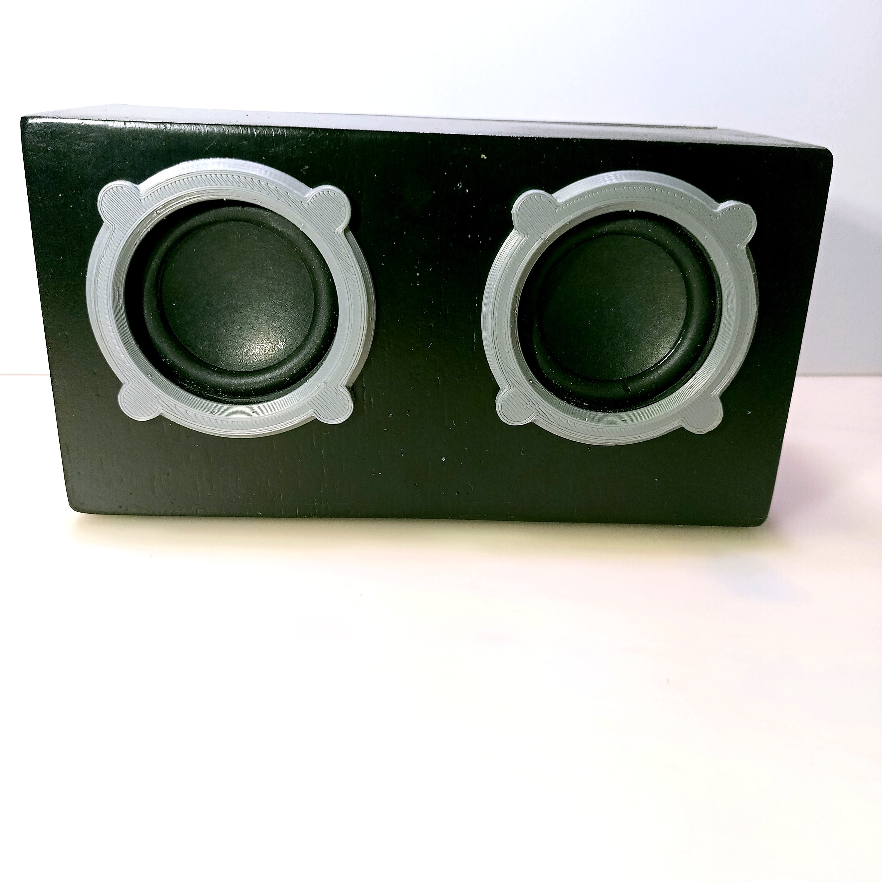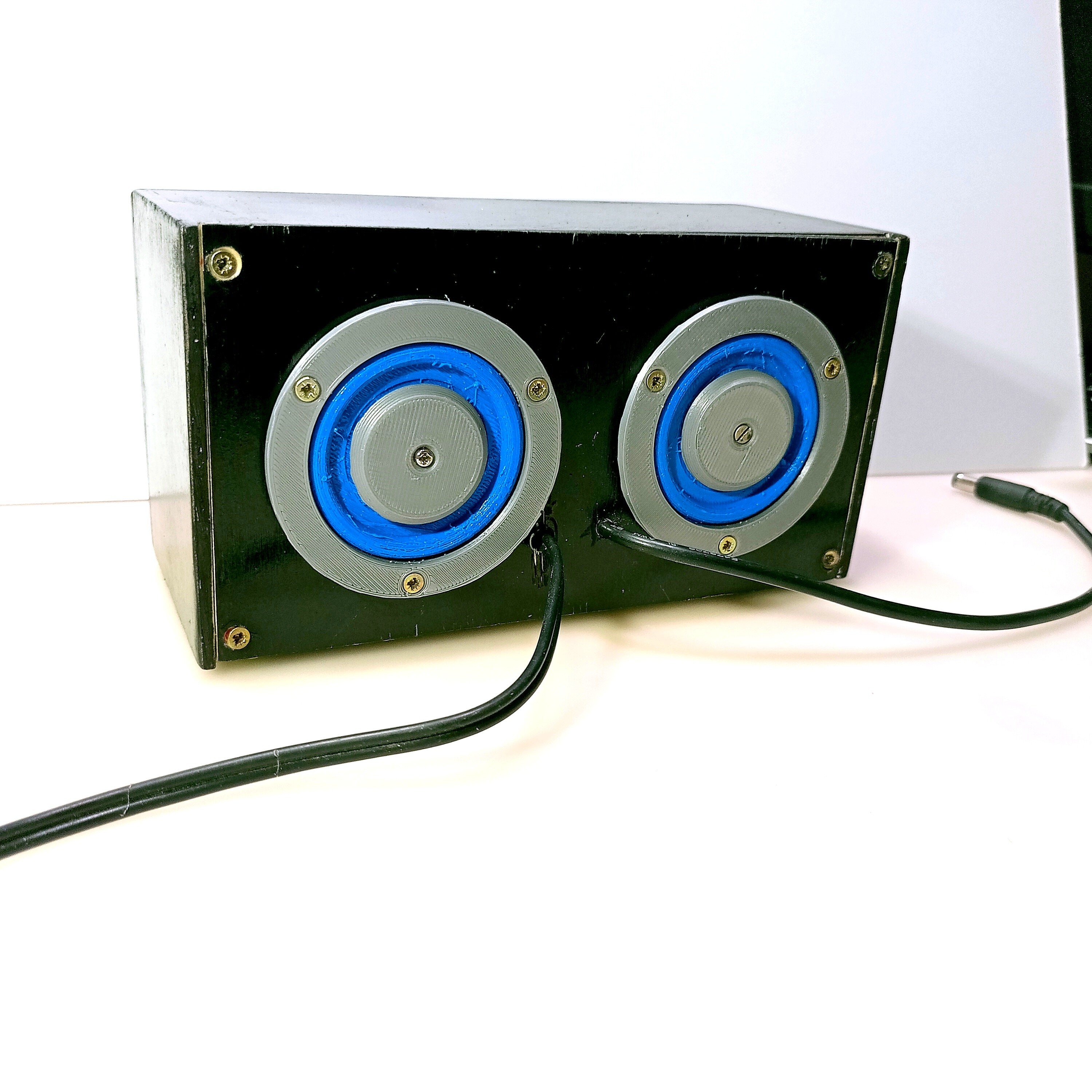 По мере исполнения первого желания, появилась охота и колонку пришпандорить. Сделал первый вариант, поместив колонку на блок питания, вписавшись в размеры конструкции, но увы, колонка получилась настолько мелкая, что и слушать её не захотелось. Пришлось увеличить «литраж», а с тем и пассивные динамики напечатать. Звук улучшился конкретно. Китайский цифровой УНЧ и их динамики позволяют слушать воспроизводимое в «кухонном» варианте, т.е. без наслаждения.
