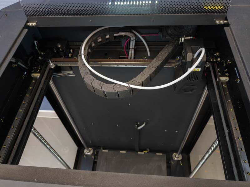 Печатная область принтера составляет 350x350x600 мм. Этого достаточно для изготовления весьма крупных моделей. Рабочий стол принтера имеет подогрев до 120°C.