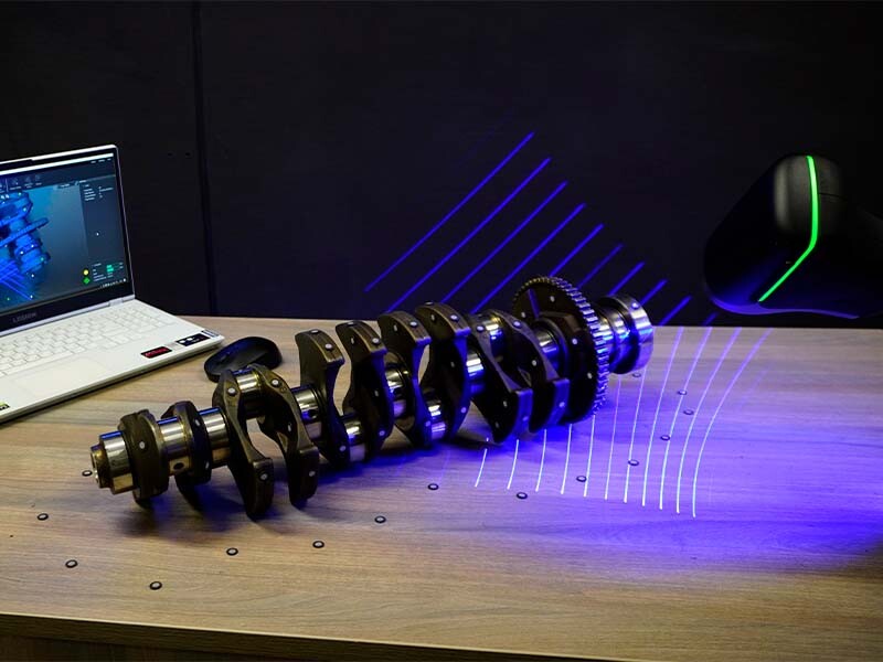 За счет синих лазеров Kscan Magic спокойно сканирует черные блестящие и хромированные объекты даже если они находятся в одной сцене, матирующий спрей для таких поверхностей не требуется.