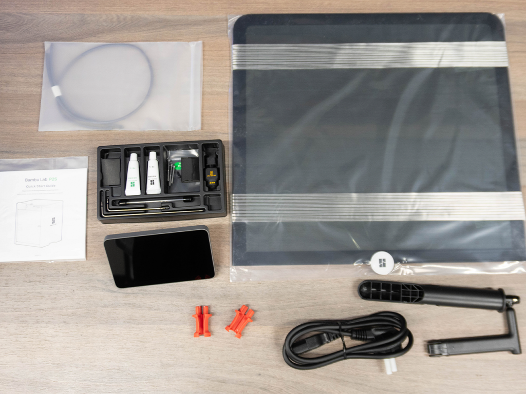 Комплеткация Bambu Lab P2S стандартная. В коробке с принтером вы найдете небольшой кейс инструментами необходимыми для обслуживани принтера - ключи, термопасту, запасной хотэнд.