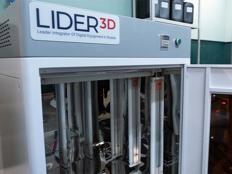 Для засветки изделий в комплекте поставляется полимеризационная камера LIDER-3D Handheld Curing Box — крупная УФ-камера для засветки моделей.