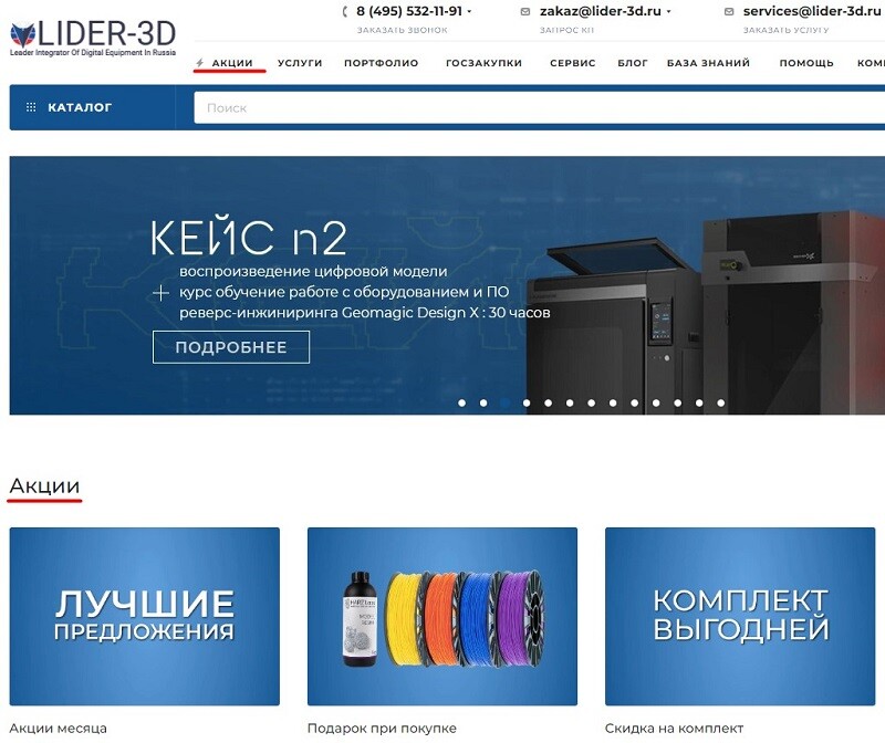 Актуальные акции, спецпредложения, подарки и скидки вы можете увидеть на главной странице сайта и в разделе “Акции”. Ждем вас на сайте LIDER-3D за приятными покупками!