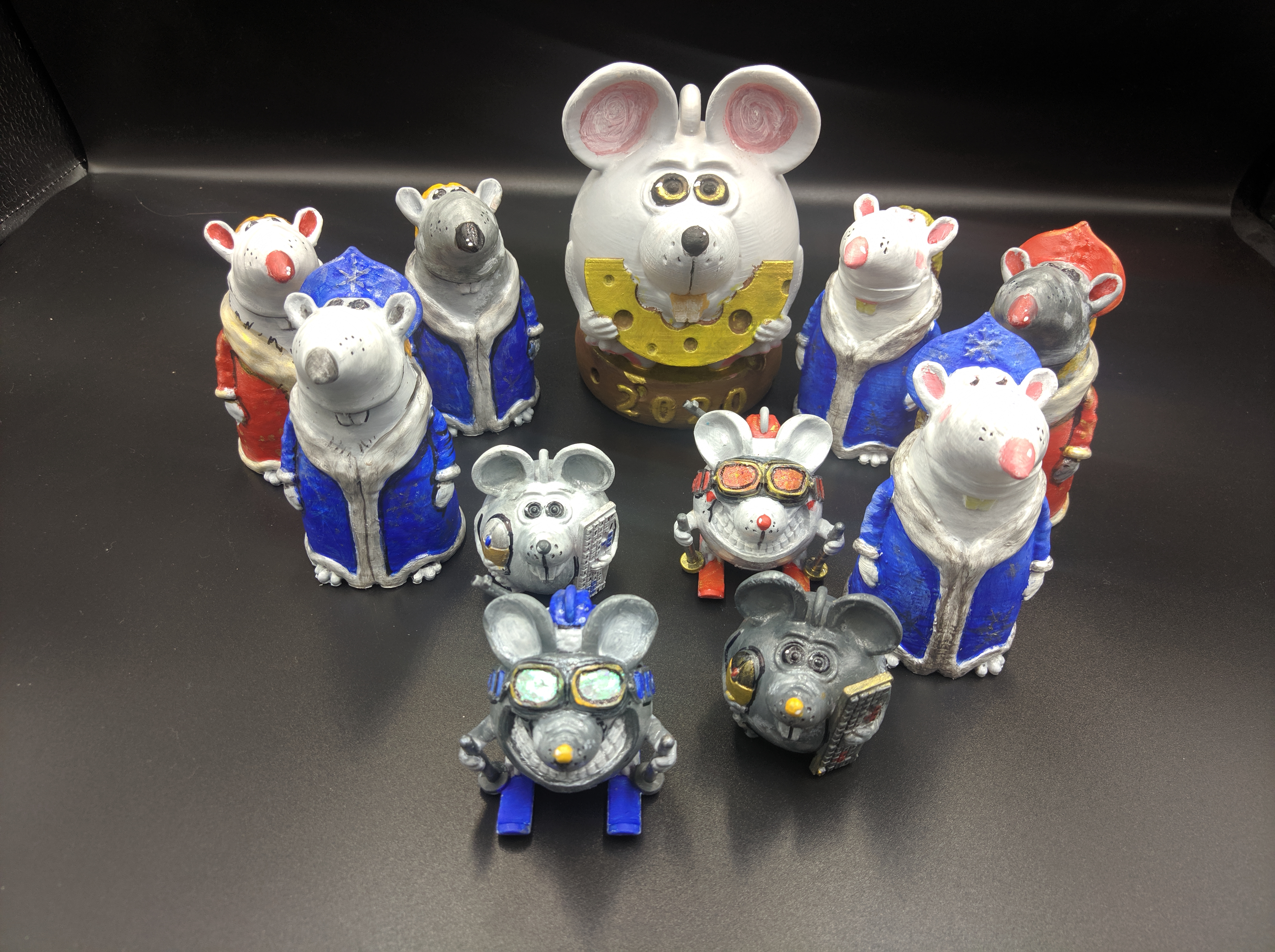 из PET-G от SolidFilament напечатана большая мыша и снегурочки, мелкие уже печатались на полимернике.
